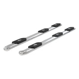 When you start and end your day turning the ignition of your truck, unreliable footing just is not an option. You need a step that can bear weight with ease, provide comfortable footing and look good doing it. ARIES 4" oval side bars are sleek, strong and custom-fitted to be a highly functional extension of your truck. For a variety of makes and models, 4" oval sides are a step up. ARIES 4" oval side bars are made with strong 4" elliptical tubing and are available in two different finish options to allow you full customization: polished stainless steel and black powder coat carbon steel. These 4" oval sides are a special wheel-to-wheel side bar option, featuring 304 stainless steel construction to be truly rust-resistant and a polished finish for a mirror-like shine. They are fitted with an extra step pad and are made to span the length of your truck's wheelbase for utility purposes and an enhanced appearance. The extended step of our wheel-to-wheel side bars allows for a sturdy foothold and easy access to the truck bed. Something that sets the ARIES 4" oval side bar apart from all others is its blended end caps and OE-style bends. Rather than capping our side bars with a plastic cap, we offer a blended end cap for a smooth, finished appearance. ARIES 4" oval side bars are also fitted with raised step pads to provide a wide stepping surface. The polypropylene construction will not crack over time, and because it has a textured grip, the surface is highly resistant to slips and skids, even when wet. Installation of these ARIES 4" oval wheel-to-wheel side bars is quick and easy with custom-fitted mounting brackets and no drilling necessary.