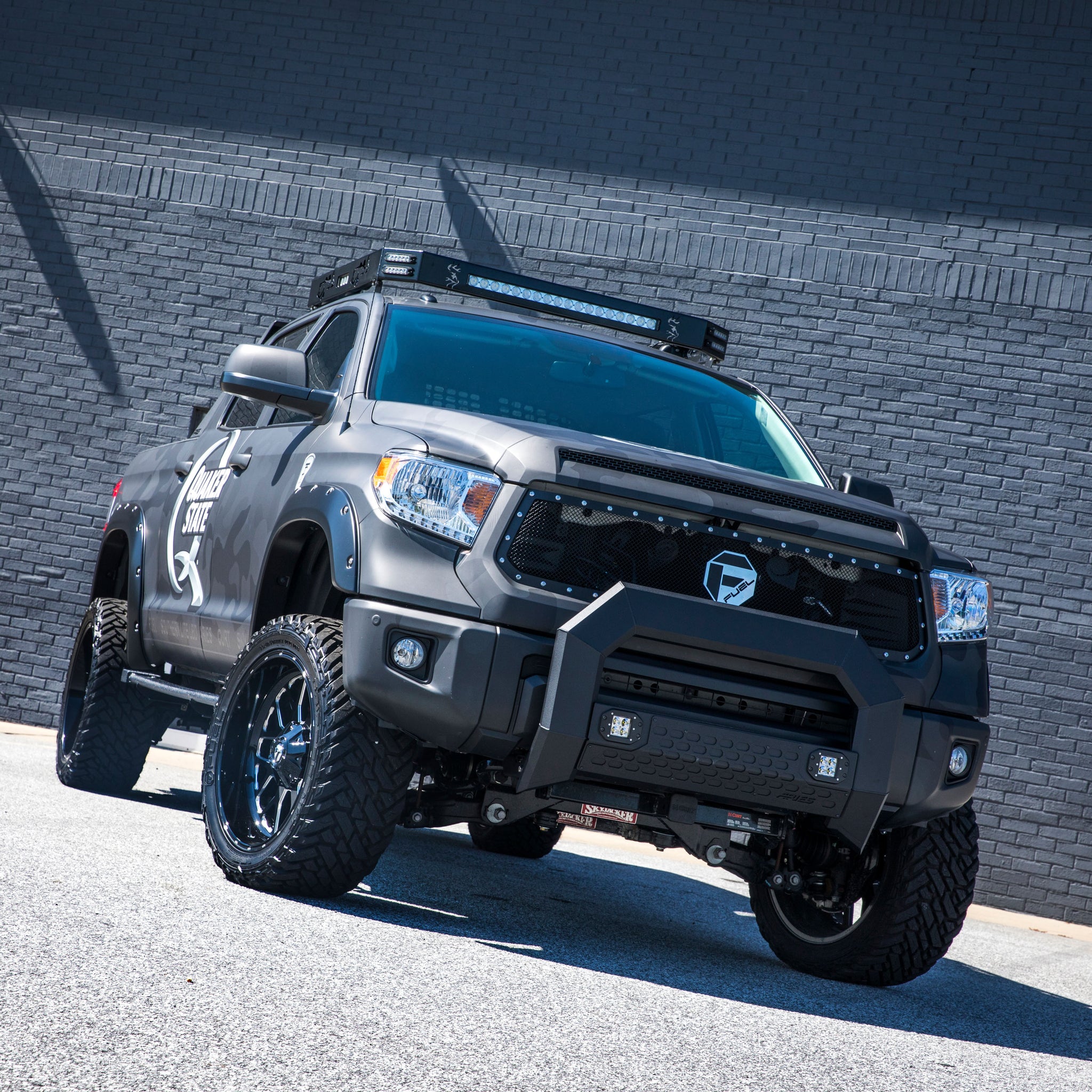 The ARIES AdvantEDGE bull bar is a unique, modern truck bull bar option, featuring a patented design, a highly corrosion-resistant construction and an easy, no-drill installation. For ultimate customization, it also comes with integrated LED lights and two finish options. The AdvantEDGE bull bar with lights is unlike all other bull bars for trucks. It's octagonal tubing and angular, A-frame shape give it an aggressive aftermarket look and complement the look of the modern pickup truck. To maintain a long-lasting, consistent finish, the AdvantEDGE bull bar is constructed from extruded aluminum alloy, making it strong, lightweight and rust-free. It is also protected in a durable powder coat finish for additional corrosion resistance, and it is available in two color choices: chrome powder coat or carbide black powder coat. To add utility and an unmistakable accent to your truck, this bull bar also features flush-mount LED lights. These 2" square lights are constructed with grade-A LED chips and IP68 and IP69K waterproof and dustproof ratings. They feature flood beams and provide 2,200 lumens. The AdvantEDGE bull bar is also available without lights. For fast and easy installation, the AdvantEDGE bull bar with lights is made vehicle-specific. This allows the bull bar to mount securely with no drilling required. This particular bull bar fits specific years of the Toyota Tundra (see application info to verify fitment). It comes with high-strength powder-coated steel brackets and a waterproof wiring harness for a complete installation. The AdvantEDGE bull bar is designed to complement the rest of the AdvantEDGE series, including the AdvantEDGE headache rack and AdvantEDGE side bars.