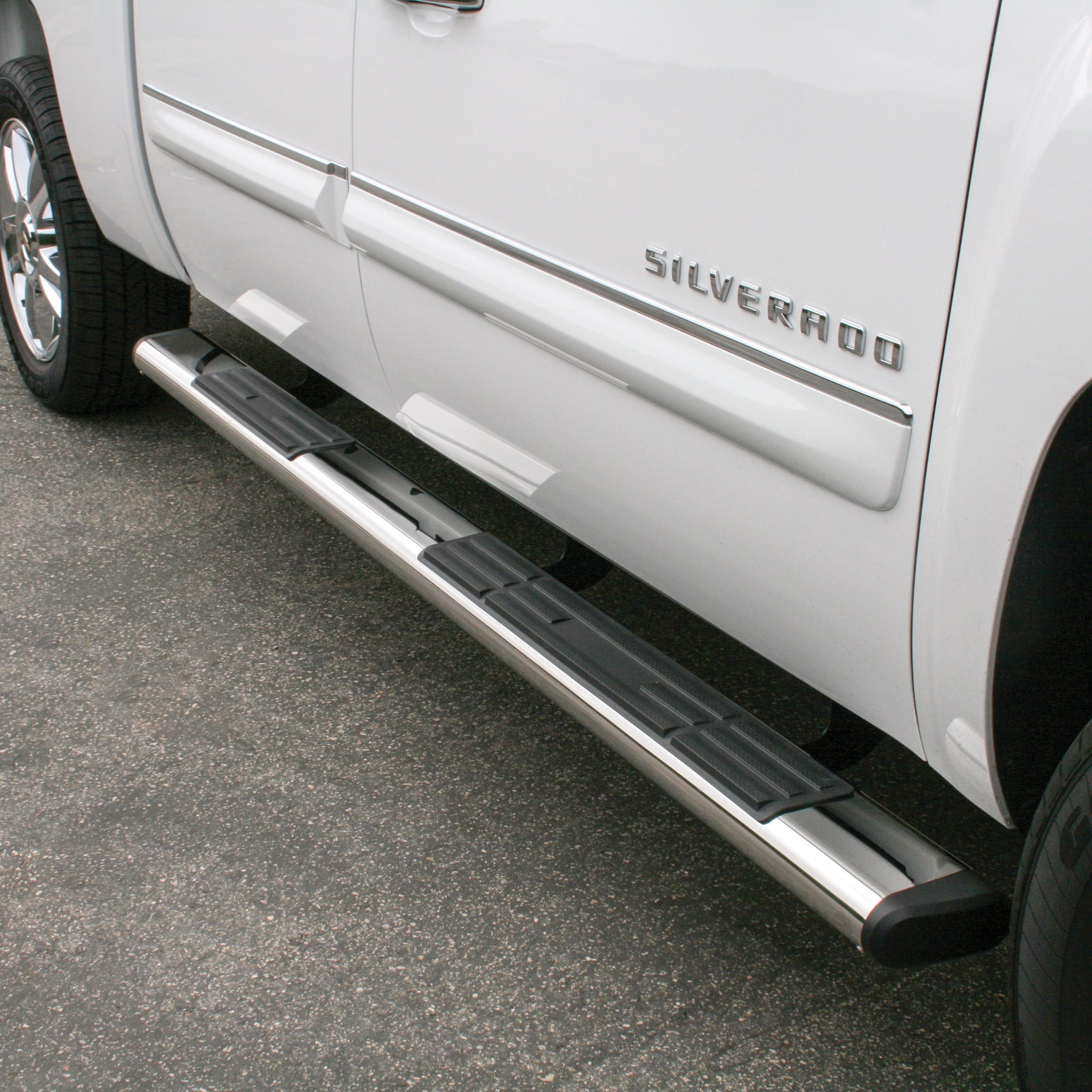 For solid footing, a comfortable step and a bold look for your truck, ARIES 6" oval side bars are a step up. They are designed to mimic the style of popular original equipment side bars and running boards, featuring two professional finish options, large non-skid step pads and tapered end caps. This particular pair of 6" ovals is made with 304 stainless steel, meaning they are high in nickel content to be truly resistant to rust and corrosion. For a lasting shine and a bright accent on your vehicle, they are given a highly polished, mirror-like finish. They are also available in semi-gloss black powder-coated aluminum. To protect the interior of the tubes, all 6" oval sides are equipped with hard ABS plastic end caps. The end caps come pre-attached to the tubes and feature a tapered design, lending to the overall OE look of the side bars and providing a professional finishing touch on your truck or SUV. For a sure step every time you climb into your vehicle, ARIES 6" ovals are equipped with extra-wide step pads. The step pads are made from tough polypropylene and provide a generous 5" width. The large, flat surface offers comfortable footing and has a textured surface to prevent slipping, even when wet. The polypropylene construction makes the step pads durable and crack-resistant for long-lasting use. ARIES 6" oval side bars are also made for easy, no-drill installation. The boards themselves feature a track system for versatile application, and they mount using vehicle-specific brackets for a custom fit on certain years of the Chevrolet Silverado 2500 HD or 3500 HD and GMC Sierra 1500, 2500 HD or 3500 HD (see application info to verify fitment). The mounting brackets are made from high-strength carbon steel and use pre-existing holes to eliminate drilling during the installation process.