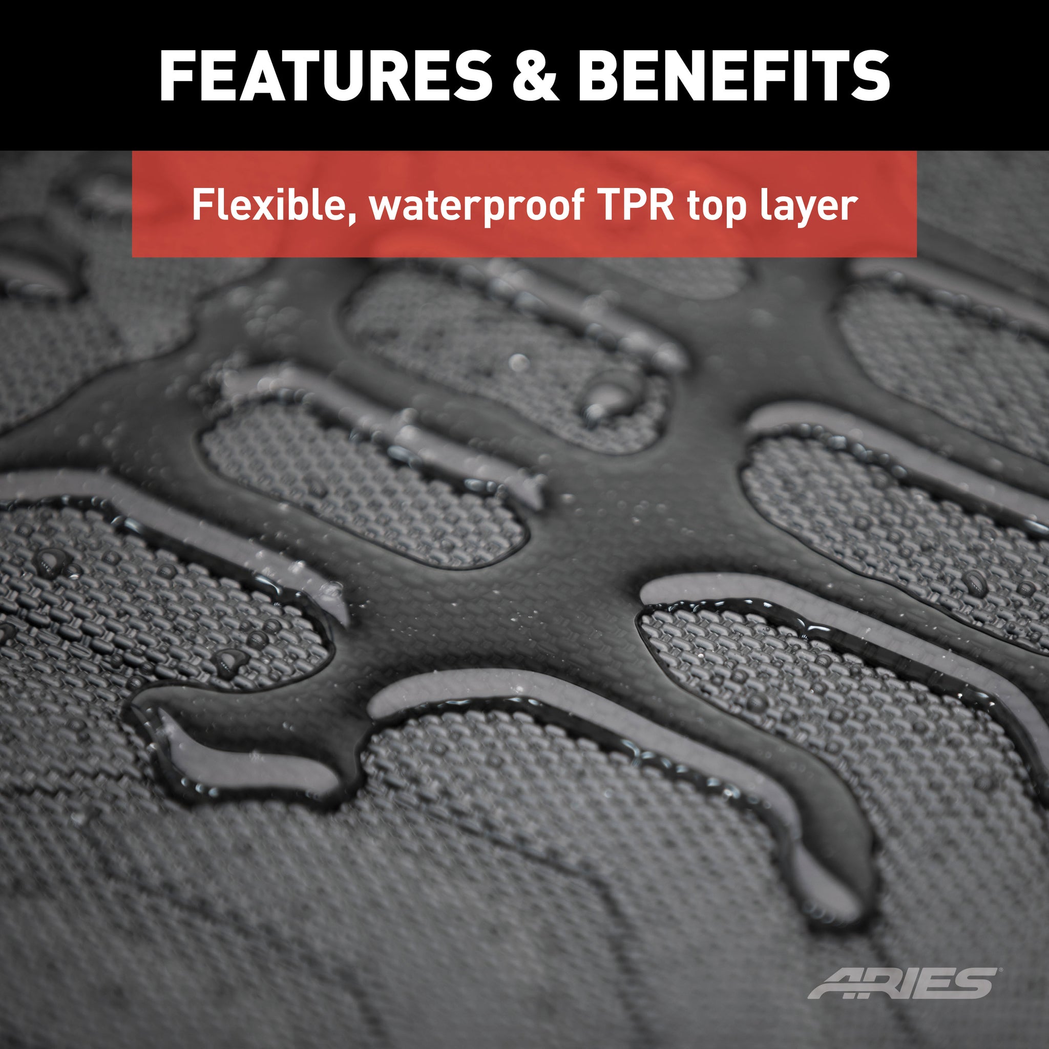 Get a stylish look and reliable interior protection with ARIES StyleGuard XD floor liners. These floor liners are not like other floor mats for trucks, Jeeps and SUVs. They are engineered with a patented anchoring system, a unique triple-layer construction and a sleek, functional finish to give you the protection you need to work hard and play even harder. This floormat kit fits select years of the Kia Sorento (includes first row only) (see application info to verify fitment). One of the greatest advantages of StyleGuard XD floor liners is their patented OmniGrip fibers. Unlike plastic nubs, OmniGrip uses thousands of wire-like bristles to anchor to all types of carpet and lock the floorliner into place. The second layer in the three-layer configuration is a thick pad of cross-linked polyethylene foam (XPE). XPE is sound-dampening to limit unwanted road noise. It is shock-absorbing to provide a softer step. And it is thermostatic, meaning it resists temperature transfer to keep your cab more comfortable, whether warm or cool. The top layer of StyleGuard XD floor liners is a highly durable, finely textured thermoplastic rubber. This tough yet breathable material is completely waterproof and stands up to the wear of regular foot traffic. Because it is textured, it offers enhanced traction and provides a sleek, stylish appearance for the interior of your vehicle. StyleGuard XD floor liners are also equipped with integrated channels and raised edges to strategically direct the flow of liquids and debris to keep them from sloshing around. Each StyleGuard XD floor liner set is laser-measured to perfectly fit your vehicle. This ensures a custom fit, a contoured look and a virtually instantaneous installation -- just drop them into place. These floor liners are also constructed from lightweight materials for easy removal.