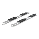 When you start and end your day turning the ignition of your truck, unreliable footing just is not an option. You need a step that can bear weight with ease, provide comfortable footing and look good doing it. ARIES 4" oval side bars are sleek, strong and custom-fitted to be a highly functional extension of your truck. ARIES 4" oval side bars are made with strong 4" elliptical tubing and are available in two different finish options to allow you full customization: polished stainless steel and black powder coat carbon steel. This set of side bars is constructed from 304 stainless steel, meaning high nickel content to be truly stainless. They easily resist rust and corrosion and feature a highly polished finish that is made to last. Something that sets the ARIES 4" oval side bar apart from all others is its blended end caps and OE-style bends. Rather than capping our side bars with a plastic cap, we offer a blended end cap for a smooth, finished appearance. We also equip the ends with a special 20-degree bend and original equipment styling to perfectly contour to your vehicle. ARIES 4" oval side bars are fitted with raised step pads to provide a wide stepping surface. The polypropylene construction will not crack over time, and because it has a textured grip, the surface is highly resistant to slips and skids, even when wet. To add an extra element of class to our oval sides, we also fit each one with a stainless steel insignia bearing the ARIES name. Installation of ARIES 4" oval side bars is quick and easy with custom-fitted mounting brackets and no drilling necessary. These nerf bars fit select model years of the Ram 2500 or 3500 and Dodge Ram 2500 or Ram 3500 (see application info to verify fitment).