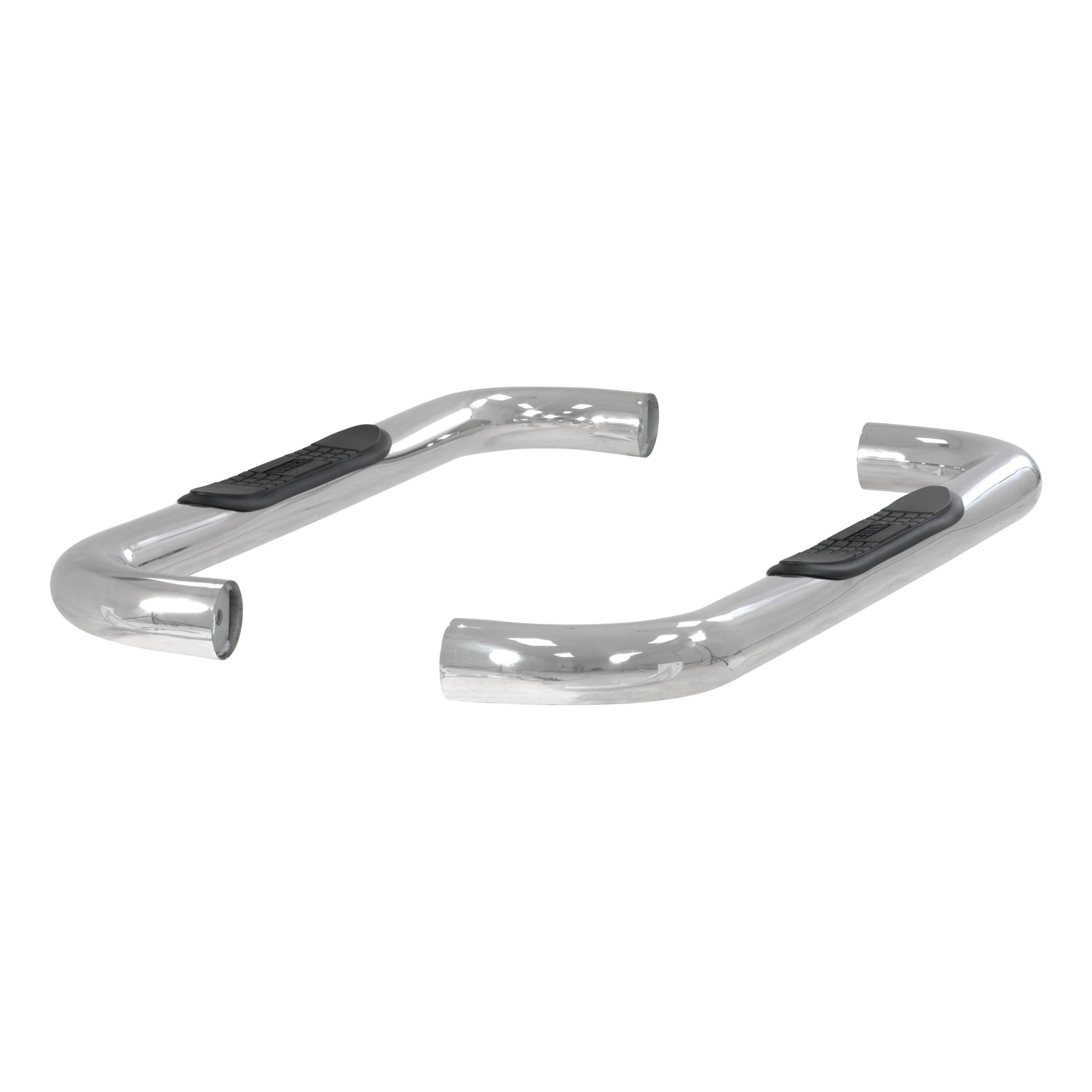 ARIES 3" side bars add a custom look and dependable footing to your truck, Jeep or SUV. They feature a classic style, a strong design and non-skid step pads. ARIES nerf bars are all made vehicle-specific for a custom, no-drill fit, and they are available in multiple finish options. This set of nerf bars is constructed from 304 stainless steel with a polished finish. Our 304 stainless steel is a true stainless with high nickel content, offering better corrosion resistance and a long-lasting finish. The polish is a triple application, resulting in a mirror-like shine to complement your vehicle. ARIES 3" round side bars also come with high-strength steel brackets and non-skid step pads. The mounting brackets -- as well as the side bars and step pads -- are custom-designed for specific makes and models to allow the nerf bars to contour to the lines of your vehicle. This ensures easy, no-drill installation and the strength necessary to provide solid footing. This particular set of custom nerf bars fits specific years of the Chevy Blazer FS, C1500, C2500, C3500, K1500, K2500, K3500 or Tahoe and GMC C1500, C2500, C3500, K1500, K2500, K3500 or Yukon (see application info to verify fitment). ARIES 3" round side bars also come with non-skid step pads made of polypropylene. These wide, custom-positioned step pads feature a textured pattern and cover a wide portion of the tubes to be more comfortable and high-traction, even in wet conditions.