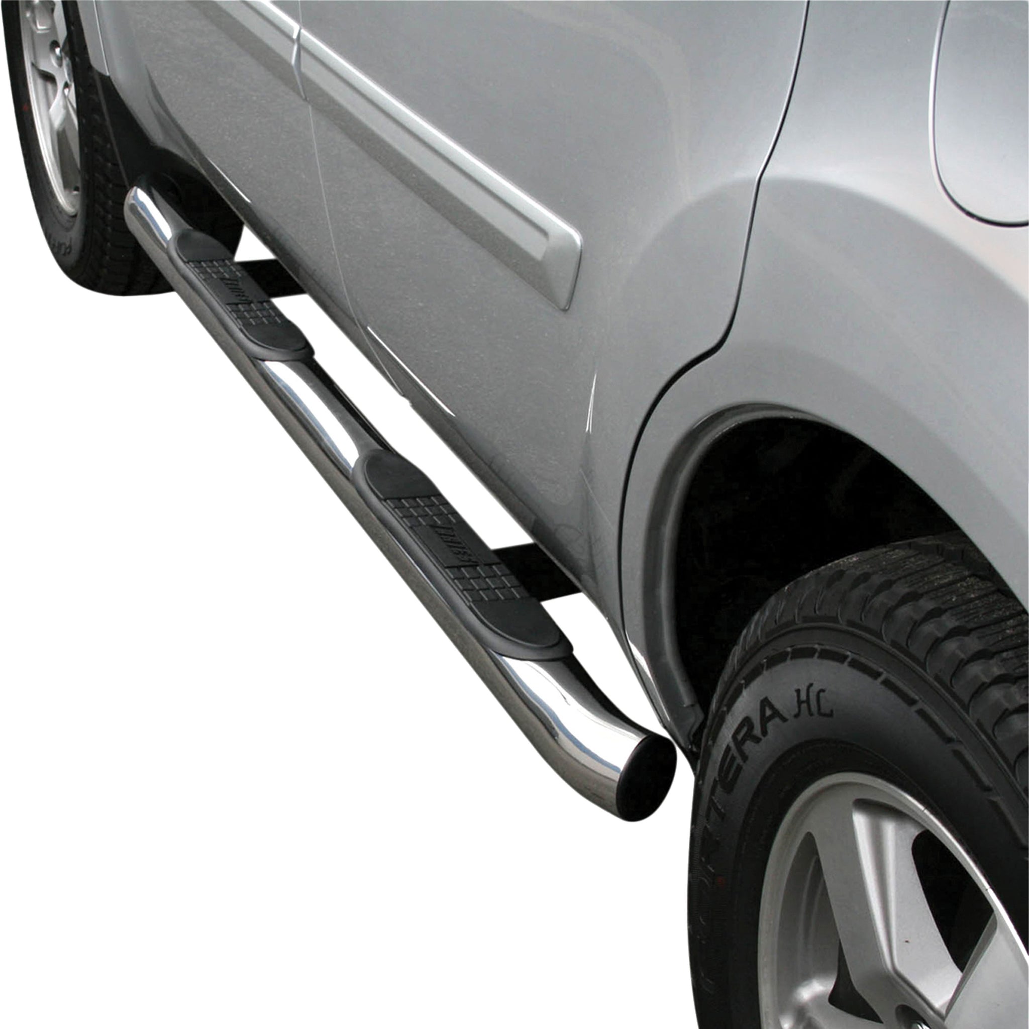 ARIES 3" side bars add a custom look and dependable footing to your truck, Jeep or SUV. They feature a classic style, a strong design and non-skid step pads. ARIES nerf bars are all made vehicle-specific for a custom, no-drill fit, and they are available in multiple finish options. This set of nerf bars is constructed from 304 stainless steel with a polished finish. Our 304 stainless steel is a true stainless with high nickel content, offering better corrosion resistance and a long-lasting finish. The polish is a triple application, resulting in a mirror-like shine to complement your vehicle. ARIES 3" round side bars also come with high-strength steel brackets and non-skid step pads. The mounting brackets -- as well as the side bars and step pads -- are custom-designed for specific makes and models to allow the nerf bars to contour to the lines of your vehicle. This ensures easy, no-drill installation and the strength necessary to provide solid footing. This particular set of custom nerf bars fits specific years of the Honda Pilot (see application info to verify fitment). ARIES 3" round side bars also come with non-skid step pads made of polypropylene. These wide, custom-positioned step pads feature a textured pattern and cover a wide portion of the tubes to be more comfortable and high-traction, even in wet conditions.
