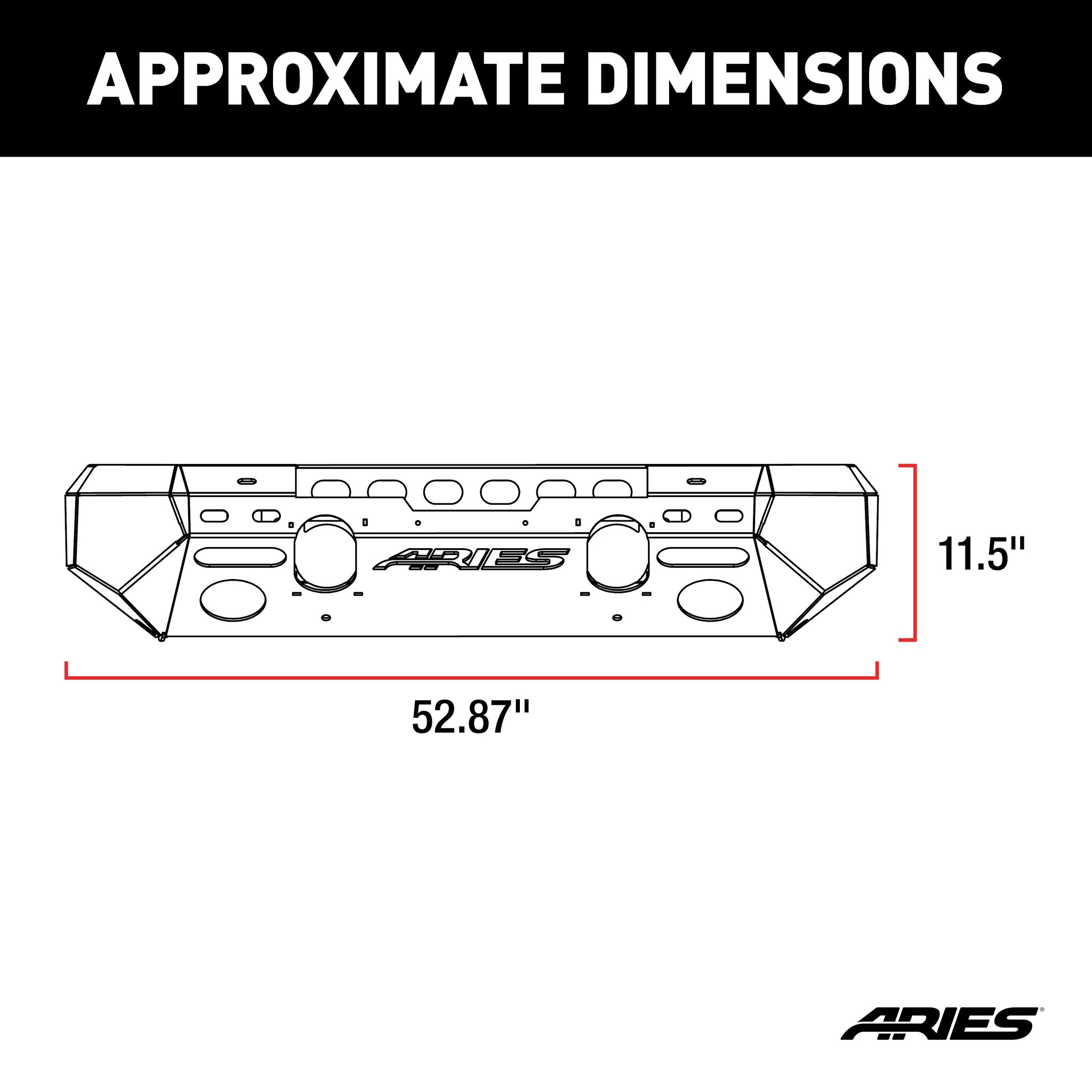 The ARIES TrailChaser Jeep bumper is unlike any other bumper for the Jeep Wrangler JK because it features a modular design. With a variety of options to choose from, you can select the perfect configuration to match the style of your Jeep Wrangler. All TrailChaser bumpers are also compatible with a variety of accessories, including LED lights, D-rings, tow hooks and a winch. This particular TrailChaser bumper comes with a center section and corner end caps. It is constructed from high-strength carbon steel and has a unique, textured black powder coat finish for maximum rust resistance. This same configuration is also available in lightweight, rust-free, powder-coated aluminum. The bumper center section features a standard 22-1/2" x 7-3/4" winch housing and is compatible with the ARIES winch adapter #2072100 for larger winches. It provides cutouts for lights and has pre-drilled holes for D-rings #2081300 and tow hooks #15600TW. The bumper corners offer a professional finishing touch with their compact, angular design. They feature the same durable powder coat as the center section and can be drilled or cut to mount additional lights. We also offer an option with these same corners with integrated, flush-mount LED lights. All ARIES TrailChaser bumpers install using pre-existing factory mounting points for fast, easy installation with no drilling required.