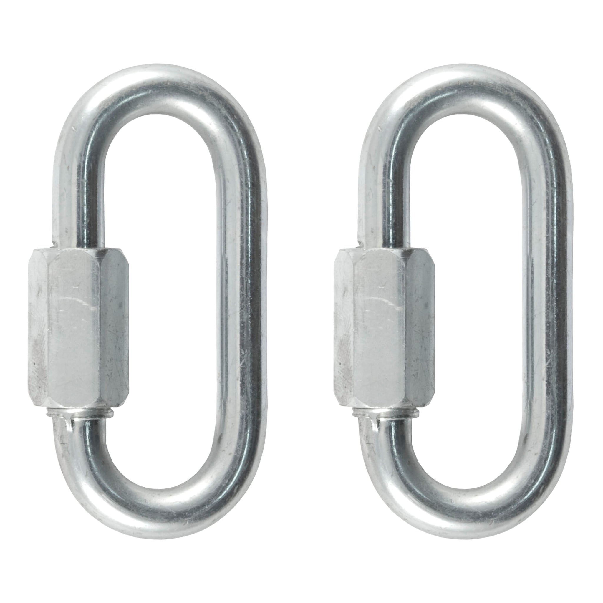 CURT quick links are an extremely versatile and reliable tool to help you get to your destination and go a little further once you get there. A quick link is essentially a hook that is able to be fastened into a closed loop. This means it can be linked onto any D-ring or tie-down like a hook and just as easily secured like a seamless link in a chain. CURT quick links feature a special threaded end and barrel screw that allow them to be dependable and convenient. The threaded link requires no tools for tightening or loosening, though it does feature a hex shape that can accept a wrench for an extra tight hold. Quick link hooks can be used to connect rope, cable and chain, and they are the perfect safety accessory to maximize the security of your safety chains and trailer. Their list of possible applications also goes well beyond towing, giving you a reliable connection for rock climbing, boating, camping, setting up a swing or hammock, leashing the dog, repairing chain, fastening down cargo and more. To make sure our quick links are fit to face the outdoors and all of your undertakings, we construct them from heat-treated steel and give them a zinc-plated finish for durability and rust resistance. These CURT quick links feature a max load capacity of 1,760 lbs. and features a 5/16" diameter link.