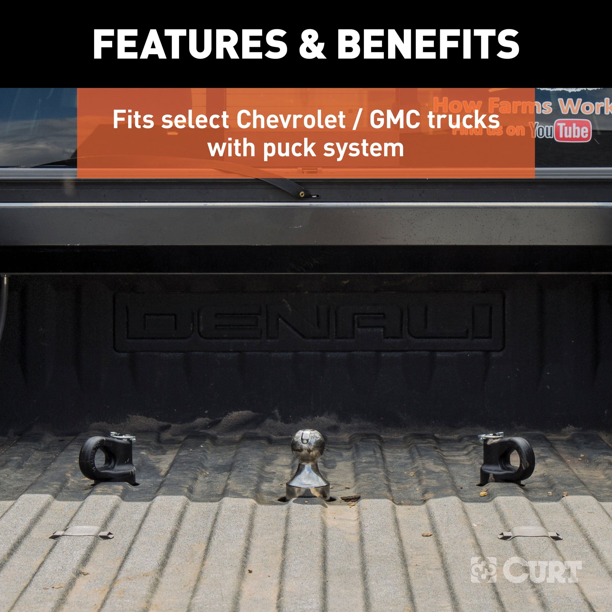 Outfitting your pickup to tow a heavy-duty flatbed or livestock trailer is easy with CURT OEM puck system gooseneck safety...