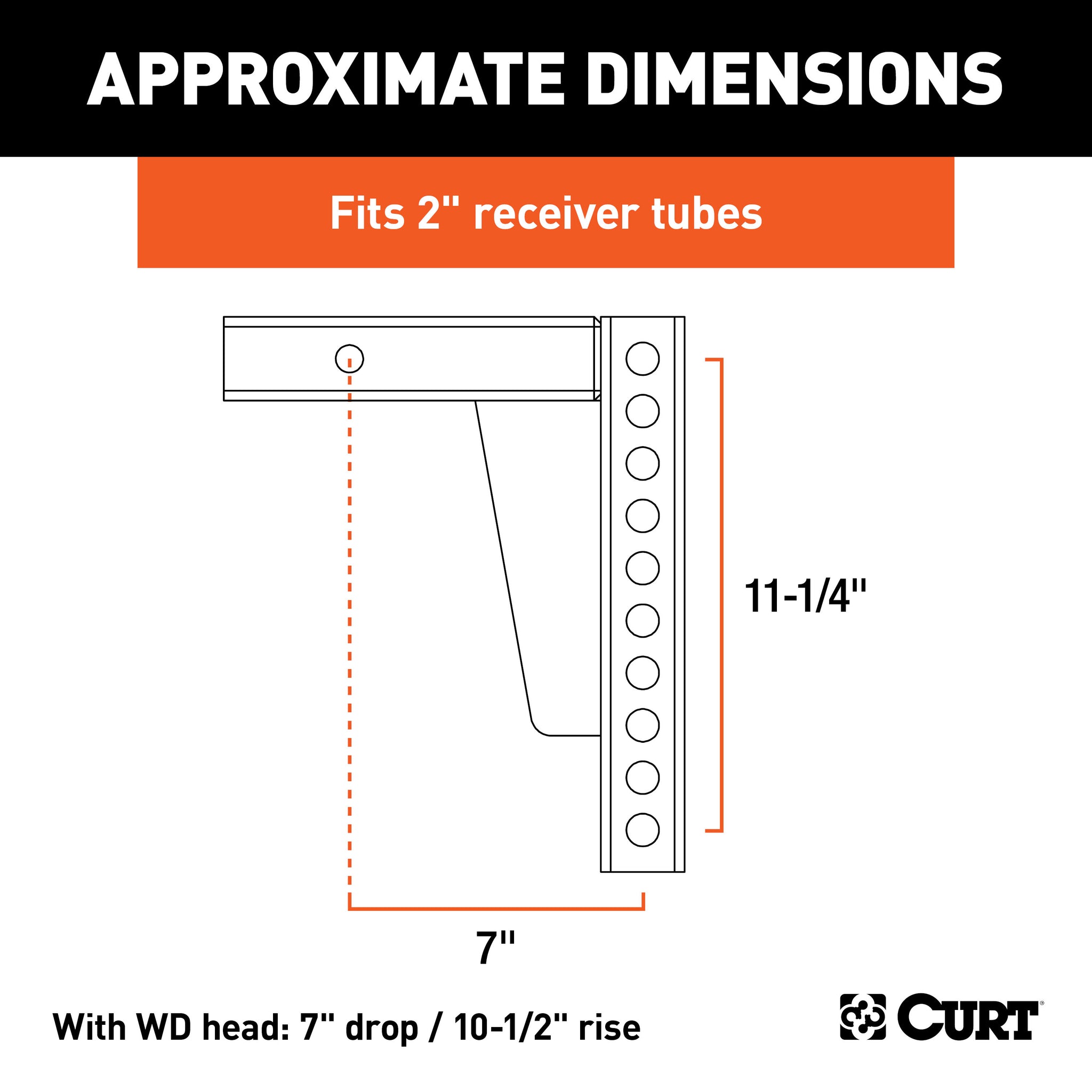 When it comes to enjoying your passion, we think towing equipment should never be the limiting factor. This CURT weight distribution replacement shank is designed for heavy-duty towing, versatile adjustment of your weight distribution hitch and long-lasting reliability. Made from high-strength steel and tested for safety, this WD replacement shank is perfect for a variety of tough jobs and long journeys. It is compatible with all CURT weight distribution hitches and has a 2" shank with a 5/8" hitch pin hole to fit any 2" x 2" receiver tube opening with a 5/8" hitch pin hole, including most CURT class 3, class 4 and Xtra Duty class 5 trailer hitches. While the receiver tube shank measures 2" x 2", the vertical shank offers a universal fit to be compatible with all CURT weight distribution hitches. Holes in the vertical shank are spaced 1-1/4" center-to-center and have a 3/4" diameter, allowing for flexible adjustment of the WD head for precise leveling of the vehicle-trailer combination. This weight distribution shank can be positioned in the rise position for a maximum rise of 10-1/2" or flipped into the drop position for a maximum drop of 7". To ensure durability and long-lasting use, CURT weight distribution replacement shanks are constructed from solid steel and shielded with a highly durable carbide black powder coat finish. This protects them from rain, snow, dirt, road salt and much more for lasting corrosion resistance.