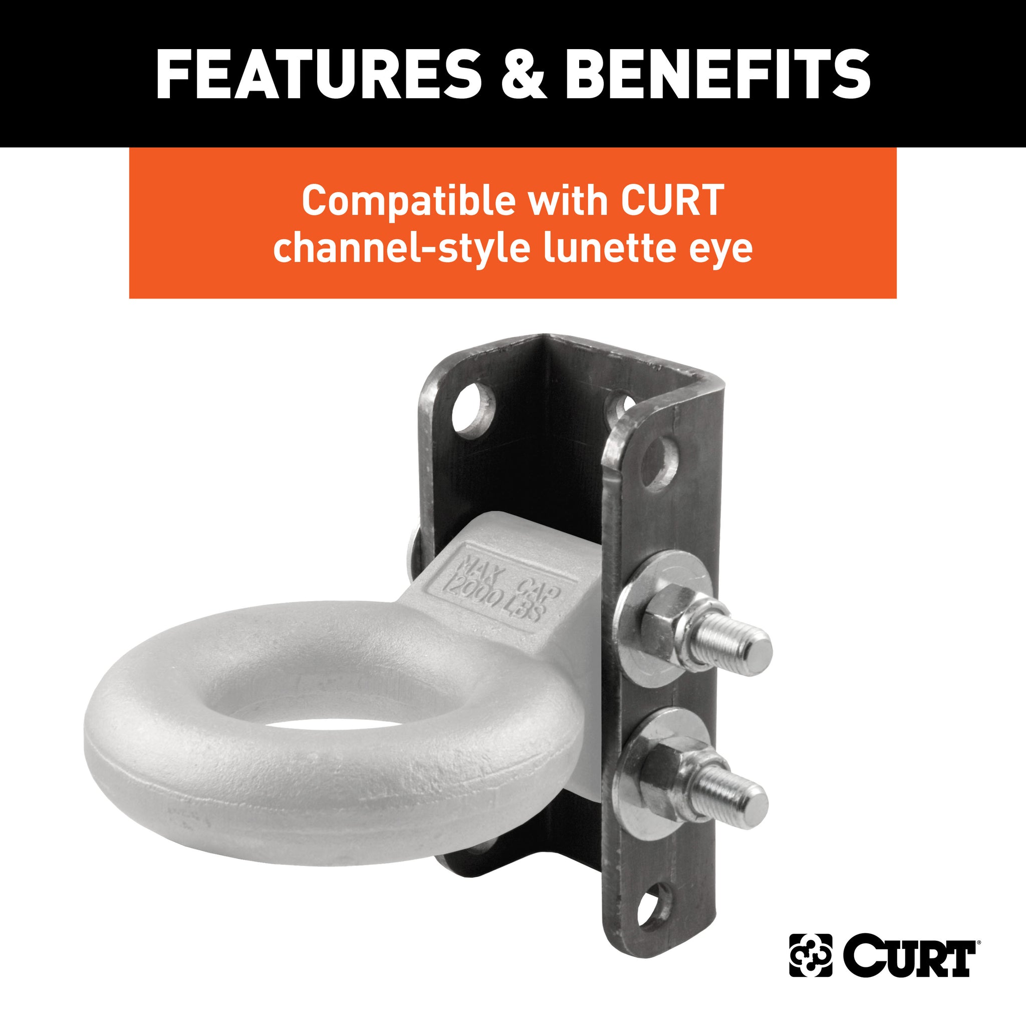 In agriculture, construction and even military applications, pintle hitches are the trusted product of specialized towing. They are notorious for their high weight capacity and simple design. The basic pintle hitch is essentially a hook and loop, with the hook attached to the vehicle and the loop mounted on the trailer. Because of their simple design, pintle hitches are able to have thicker metal construction and more secure coupling. CURT has a wide variety of pintle hitches and pintle-style products to give you a complete solution for your heavy-duty towing needs. This adjustable coupler channel is designed to mount CURT lunette rings #48600, #48601 or #48660 or CURT channel-style couplers #25319, #25329, #25330 or #25328, allowing for easy height adjustment and trailer levelling. It features a formed, one-piece steel construction and boasts a gross trailer weight capacity of 12,000 lbs. (NOTE: Never exceed the lowest weight capacity of any towing component; i.e. the vehicle, hitch, trailer, etc). It offers three different height adjustment positions with an overall height of 7-1/2".