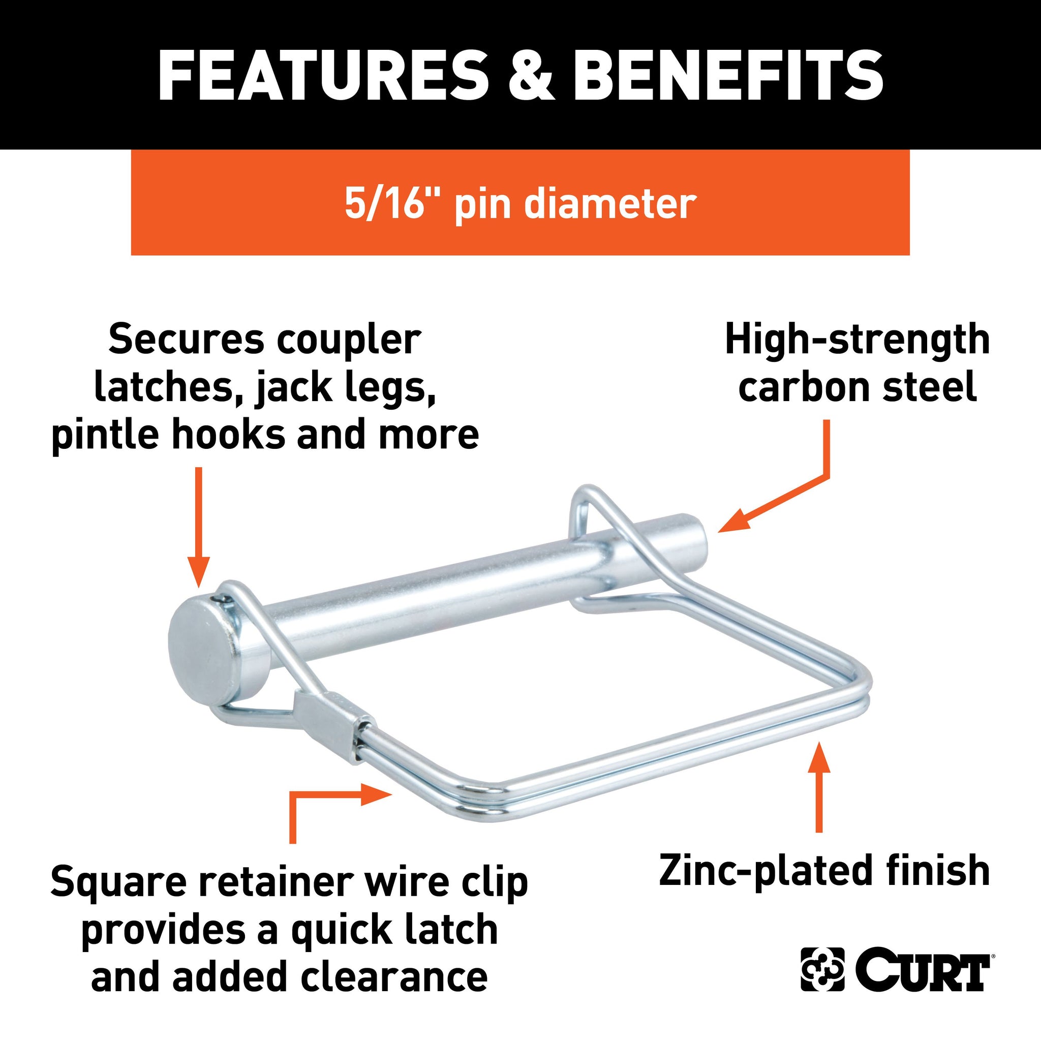 CURT safety pins go beyond the simple function of keeping your coupler latch secure. They are constructed from quality materials...