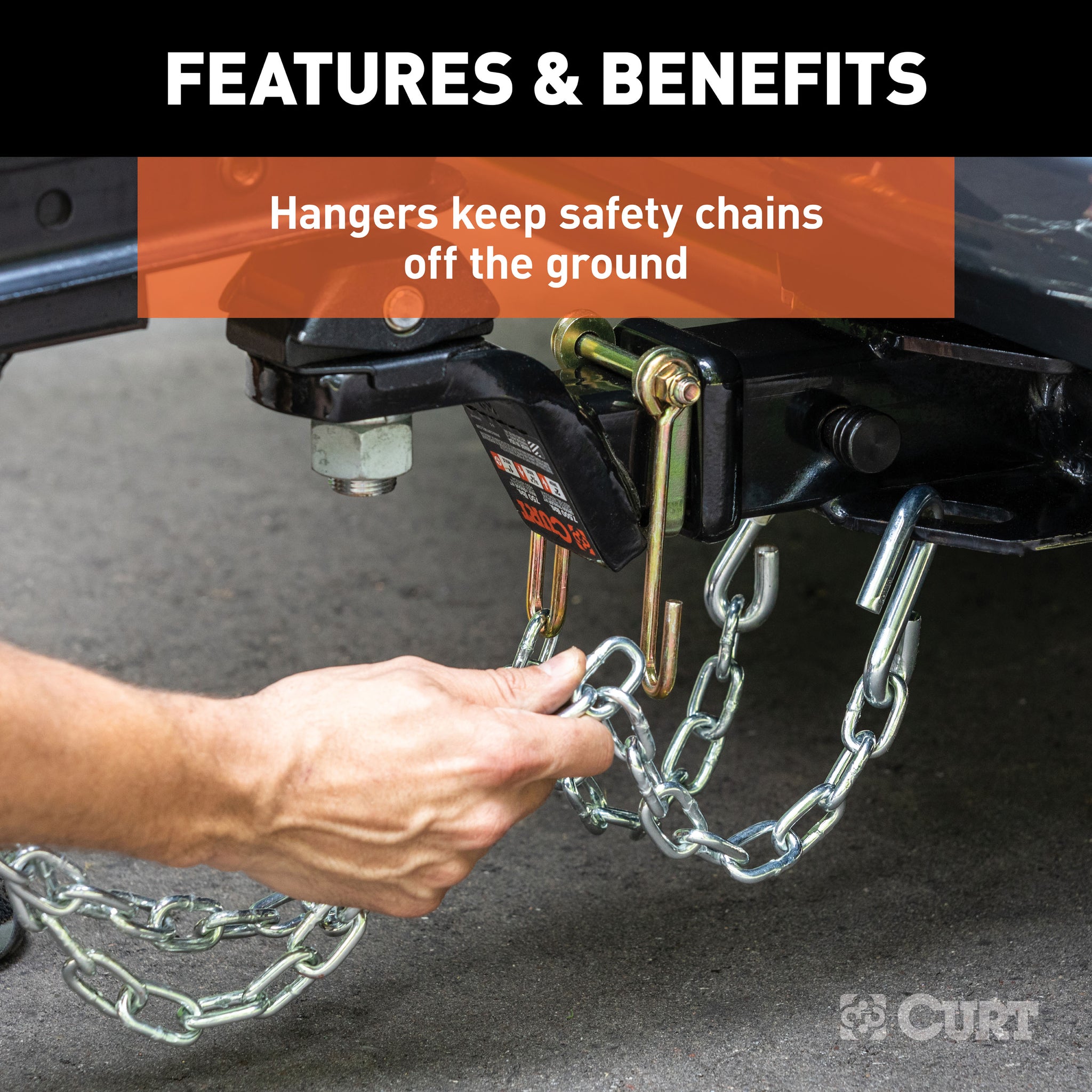 The CURT trailer safety chain hanger bracket saves your trailer chains from scraping and dragging on the ground. It quickly...