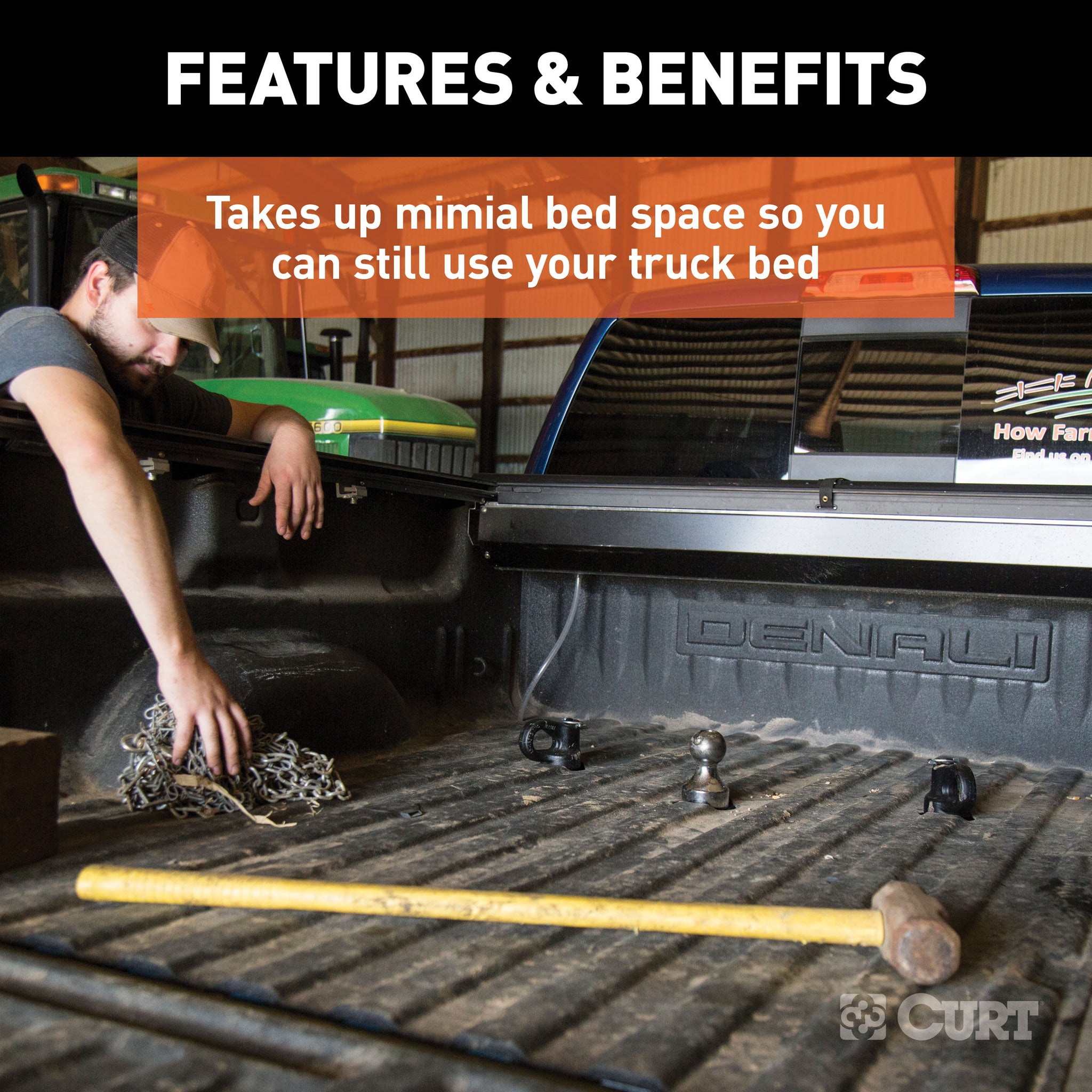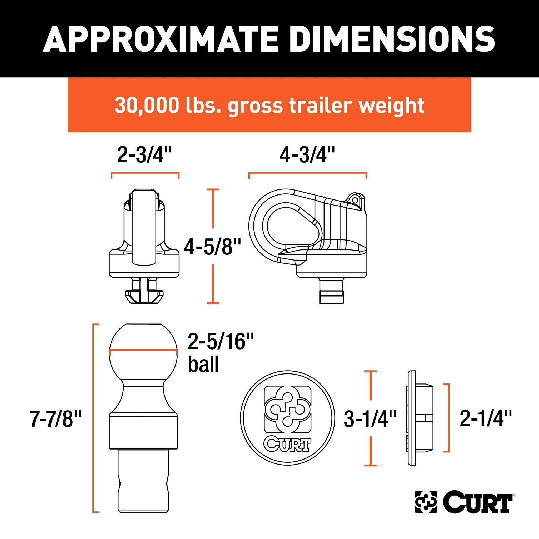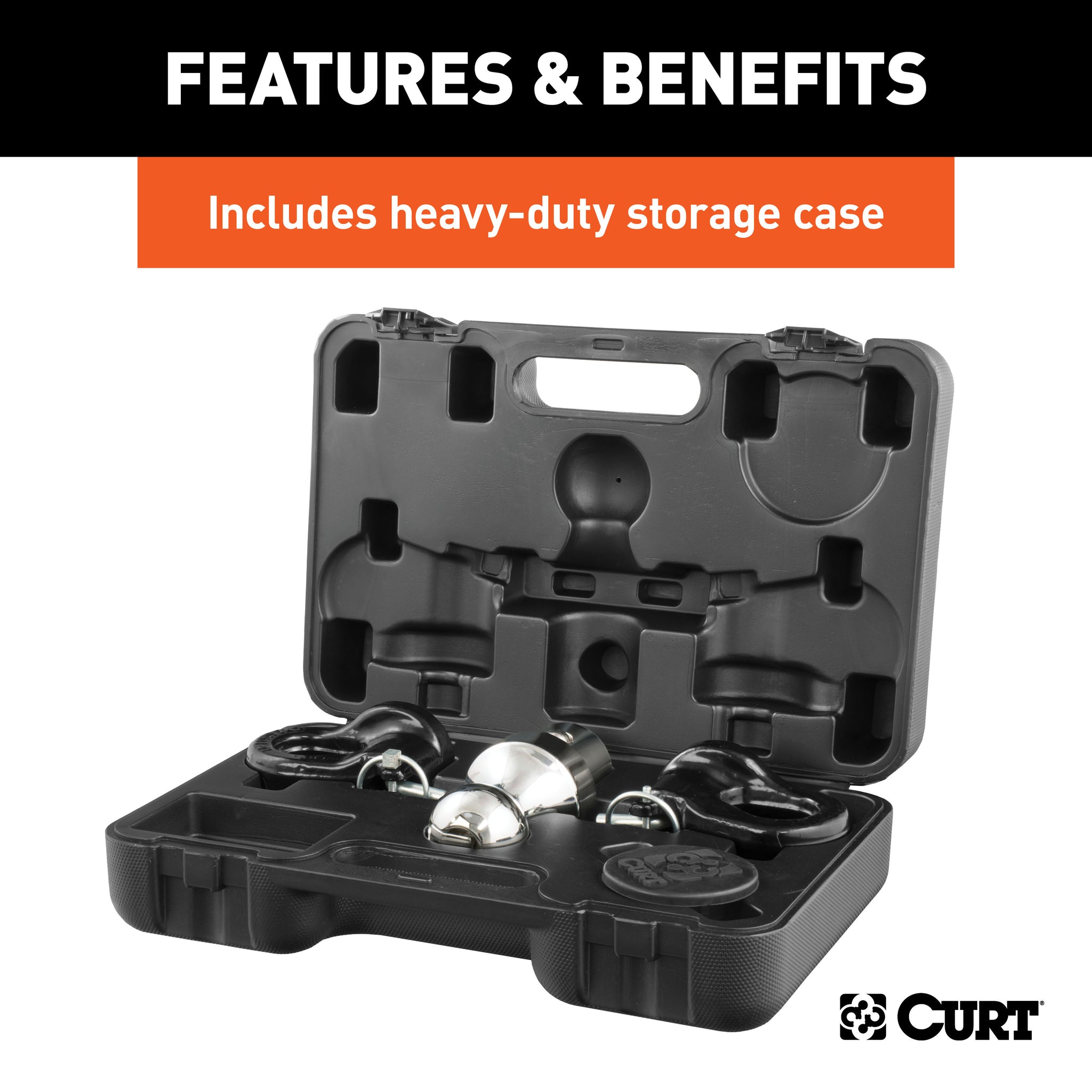 The components of this CURT 30K puck system gooseneck kit easily drop into the truck bed pucks, instantly equipping the truck for gooseneck towing. The kit includes a gooseneck ball, safety chain anchors, a rubber hole cover and a durable storage case. It fits select model years of the Chevrolet Silverado 2500 HD and 3500 HD, Ford F-250 and F-350 Super Duty, GMC Sierra 2500 HD and 3500 HD and Nissan Titan XD (see application info verify fitment). It is rated for 30,000 lbs. GTW and 7,500 lbs. vertical load. The OEM puck system gooseneck ball perfectly fits into the center ball hole and provides a 2-5/16" ball to fit most standard gooseneck trailers. It features with a patented installation system, operating with a simple quarter-turn latch lock for ease of use and a secure mount. Retention balls, built into the shank, keep the gooseneck ball fixed into the receiver hole and keep your trailer locked on tight. Also included in the kit are CURT OEM puck system gooseneck safety chain anchors. Like the gooseneck ball, these patented anchors are made specifically for Chevrolet, Ford, GMC or Nissan Titan XD pickup trucks with the puck system and provide a reliable connection for your gooseneck trailer. They feature a simple drop-in installation system with no tools required, and they offer large safety chain loops to accept heavy-duty clevis hooks. These safety chain anchors are constructed from heavy-duty, cast steel and have a highly durable powder coat finish. Finally, this gooseneck puck system kit includes a tough rubber hole cover to keep water, dirt, grime and rust out of the gooseneck ball hole. The cover installs with a friction fit and helps extend the life of your gooseneck hitch. We also include a durable plastic storage case with each kit to keep the components protected and together for easy storage. The case can be stored inside your truck or truck bed tool box to keep the ball and anchors on-hand whenever you need them.