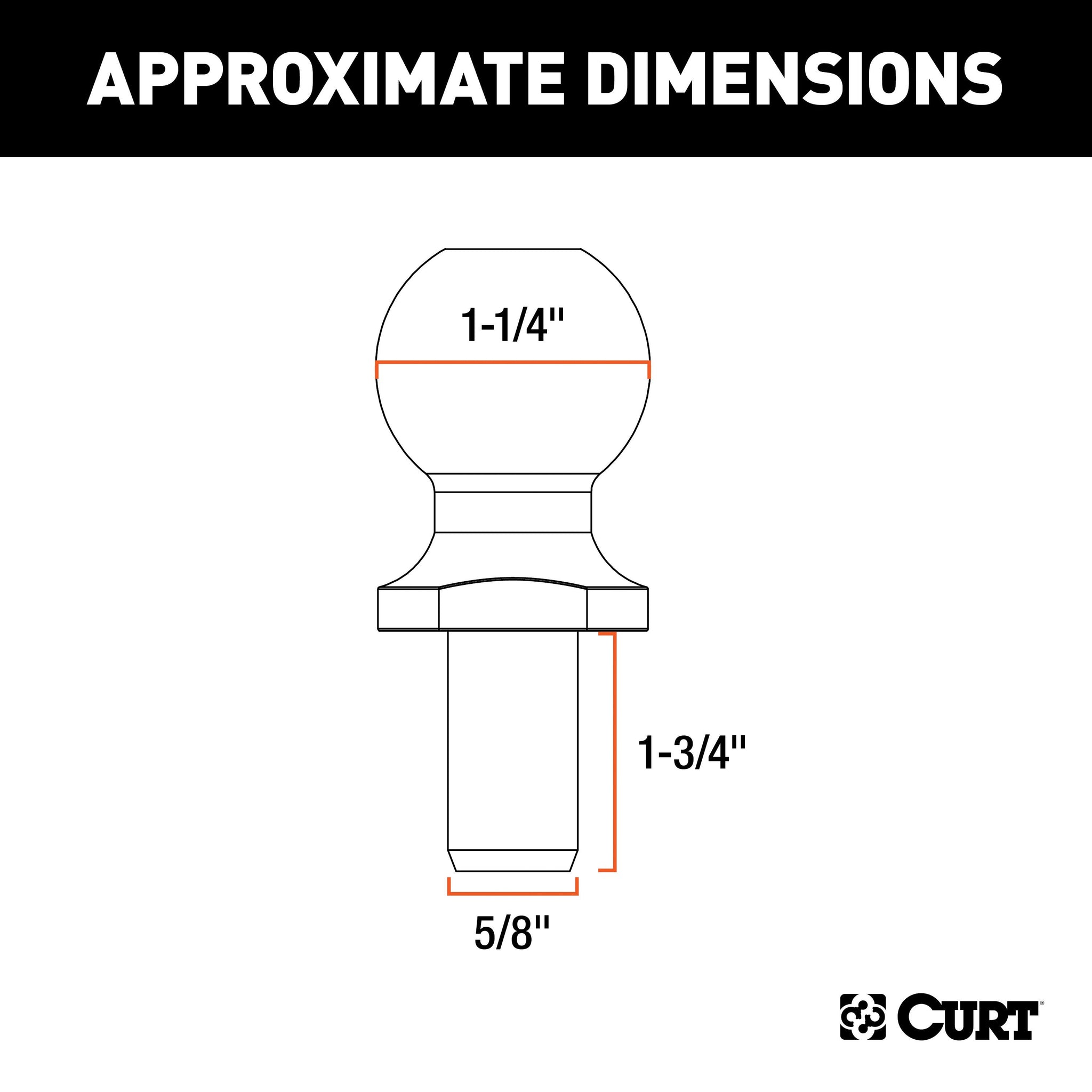 A sway control unit is an inexpensive solution to the problem of a wandering trailer. CURT sway control units are designed to attach to your vehicle and trailer at the coupling point and counteract any lateral movement in your trailer, keeping your tow load straighter on the road and giving you more control over your vehicle. The sway bar uses a material like that used in brake pads to provide the necessary resistance while still allowing your vehicle to complete proper turns with your trailer attached. The sway control mounts onto the frame of your trailer and connects to the vehicle's ball mount using a separate trailer ball from that used for coupling the trailer. This sway control replacement ball is designed to attach a sway control unit to the vehicle-side of the connection. With its 5/8" shank diameter, it mounts into the mounting tab of a weight distribution hitch or a sway control ball mount. It features a ball diameter of 1-1/4" to fit the CURT sway control unit #17200 and features a chrome-plated finish for long-lasting rust resistance.