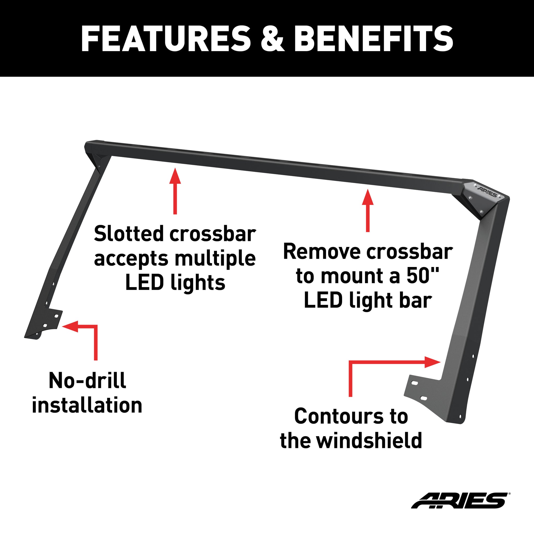 - Crossbar can also be removed to mount a 50" LED light bar (#1501278)
