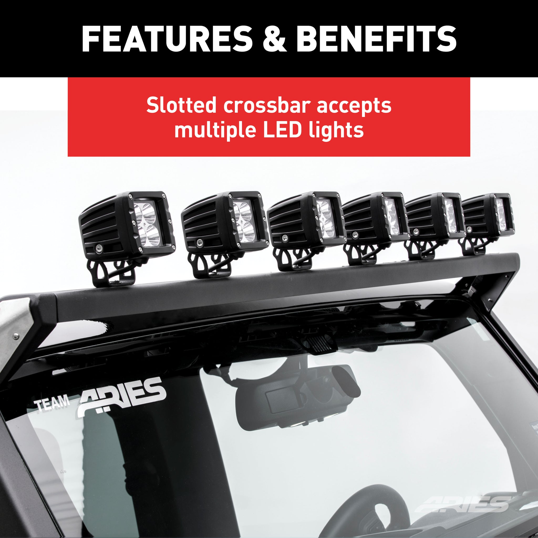 - Slotted crossbar accepts multiple LED lights for ultimate customization
