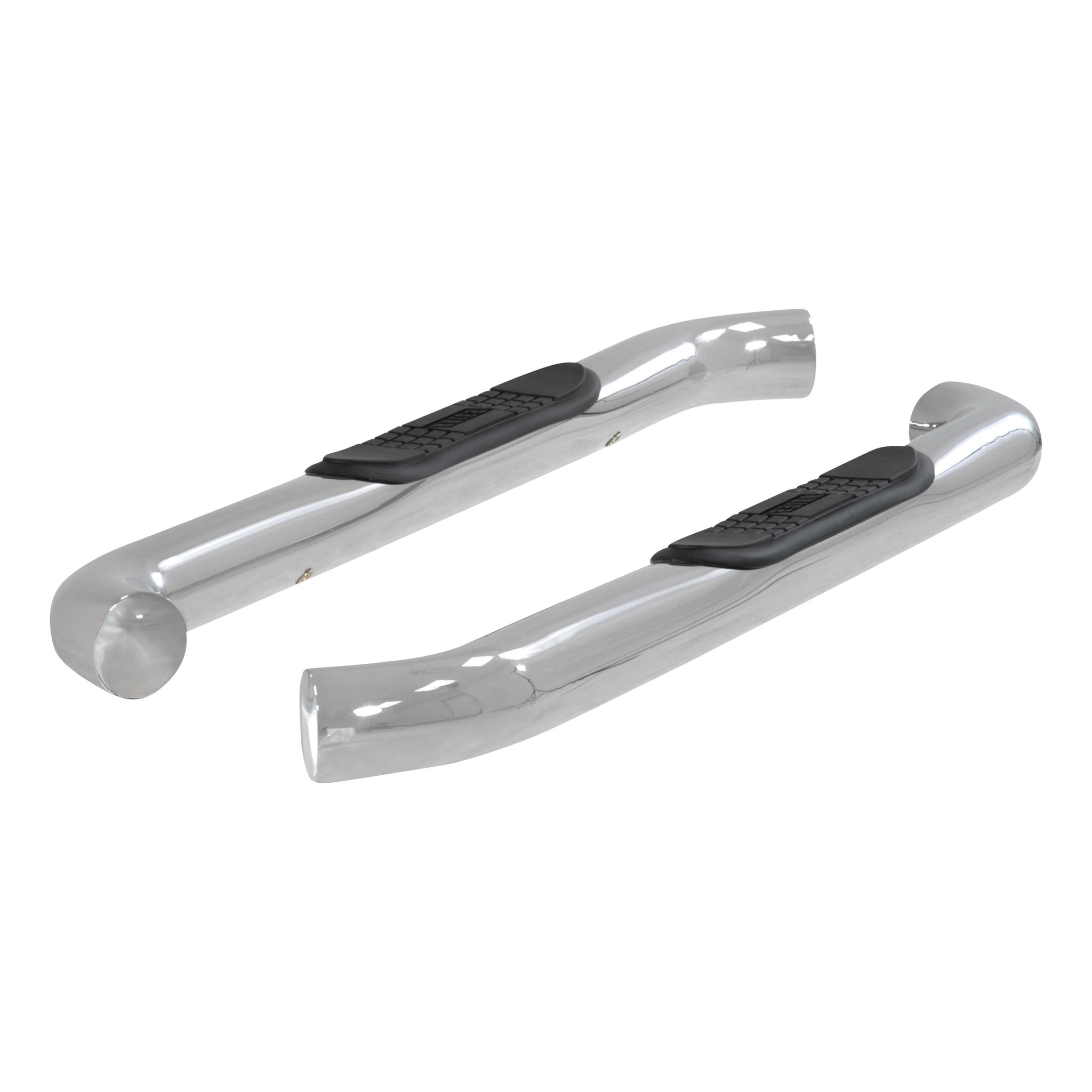 ARIES 3" side bars add a custom look and dependable footing to your truck, Jeep or SUV. They feature a classic style, a strong design and non-skid step pads. ARIES nerf bars are all made vehicle-specific for a custom, no-drill fit, and they are available in multiple finish options. This set of nerf bars is constructed from 304 stainless steel with a polished finish. Our 304 stainless steel is a true stainless with high nickel content, offering better corrosion resistance and a long-lasting finish. The polish is a triple application, resulting in a mirror-like shine to complement your vehicle. ARIES 3" round side bars also come with high-strength steel brackets and non-skid step pads. The mounting brackets -- as well as the side bars and step pads -- are custom-designed for specific makes and models to allow the nerf bars to contour to the lines of your vehicle. This ensures easy, no-drill installation and the strength necessary to provide solid footing. This particular set of custom nerf bars fits specific years of the Chevy Silverado 1500, 1500 Classic, 2500 HD, 2500 HD Classic, 3500 HD or 3500 Classic and GMC Sierra 1500, 1500 Classic, 2500 HD, 2500 HD Classic, 3500 HD or 3500 Classic (see application info to verify fitment). ARIES 3" round side bars also come with non-skid step pads made of polypropylene. These wide, custom-positioned step pads feature a textured pattern and cover a wide portion of the tubes to be more comfortable and high-traction, even in wet conditions.