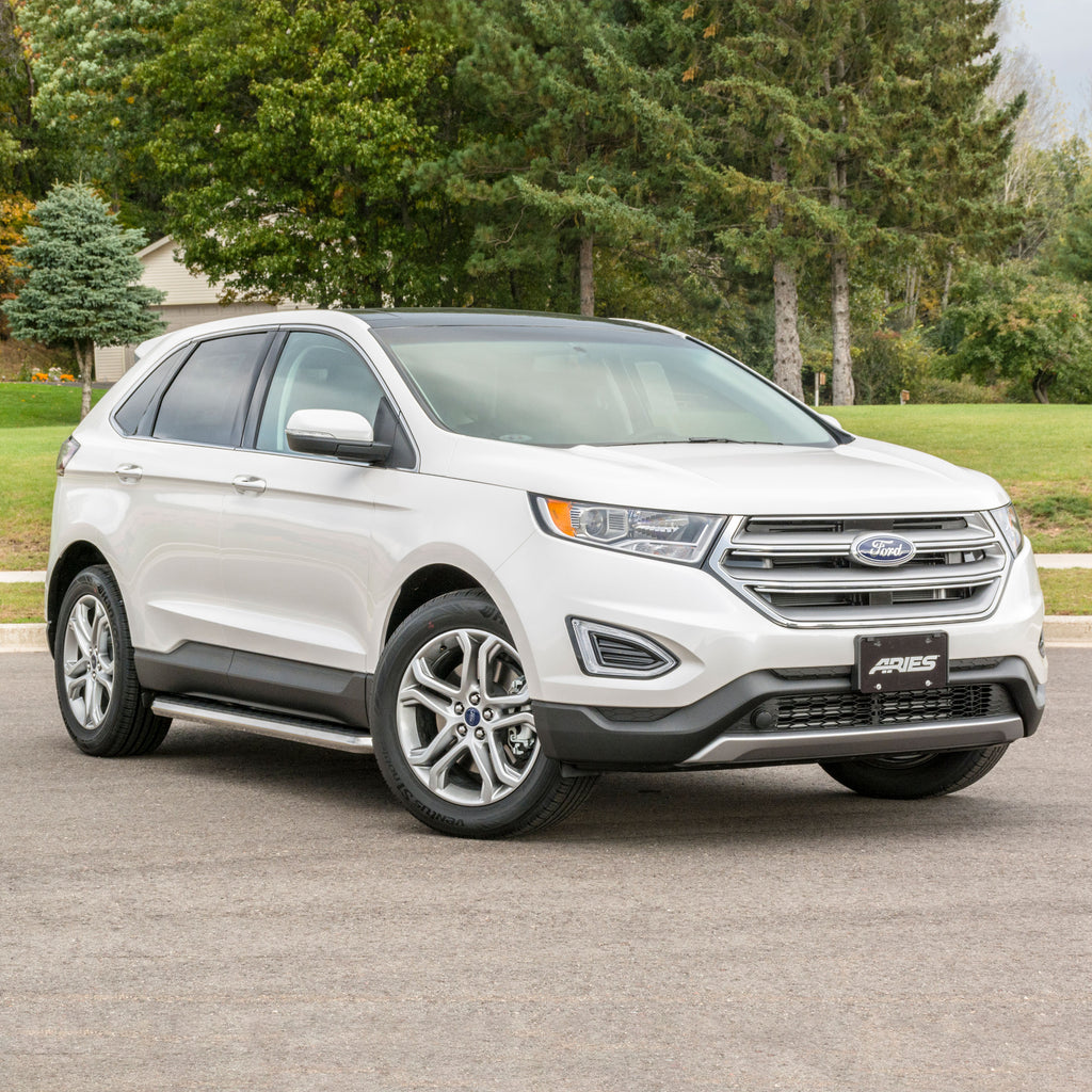 For some, it's more than just a drive. It's about definition -- finding the rush that comes with your hands on the wheel and your foot on the gas -- and it starts by stepping into your vehicle with confidence. ARIES AeroTread running boards give new definition to your drive with their sleek design, full-length treads and flawless finish. They feature unencumbered aluminum construction and a custom contour to redefine your look and offer a solid step up. Made specifically for today's crossover and SUV, ARIES AeroTread running boards are marked for their aerodynamic look and lightweight build. They are constructed from an extruded aluminum base, making them strong and impervious to the elements. Each set of running boards features sleek, curved edges with tapered ends to seamlessly blend with the body of your vehicle. To give you the exact, customized look you want, AeroTread running boards come with one of two front-trim finish options: polished stainless steel or black carbide powder-coated stainless steel. They are also equipped with a 5" wide, hard plastic step pad that runs the entire length of the board, providing a non-skid surface no matter where you place your foot. AeroTread running boards install using a track mounting system to attach vehicle-specific brackets, and pre-existing holes in the vehicle's frame are used to eliminate drilling, speed up installation and ensure stable footing. This set of running boards is designed to fit specific years of the Ford Edge (see application information to verify compatibility with your vehicle). The mounting brackets are made from steel and are coated in a powder coat finish for long-lasting dependability. Whatever road you choose, define your drive with ARIES AeroTread running boards.