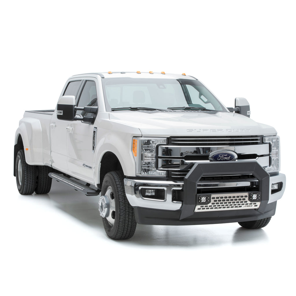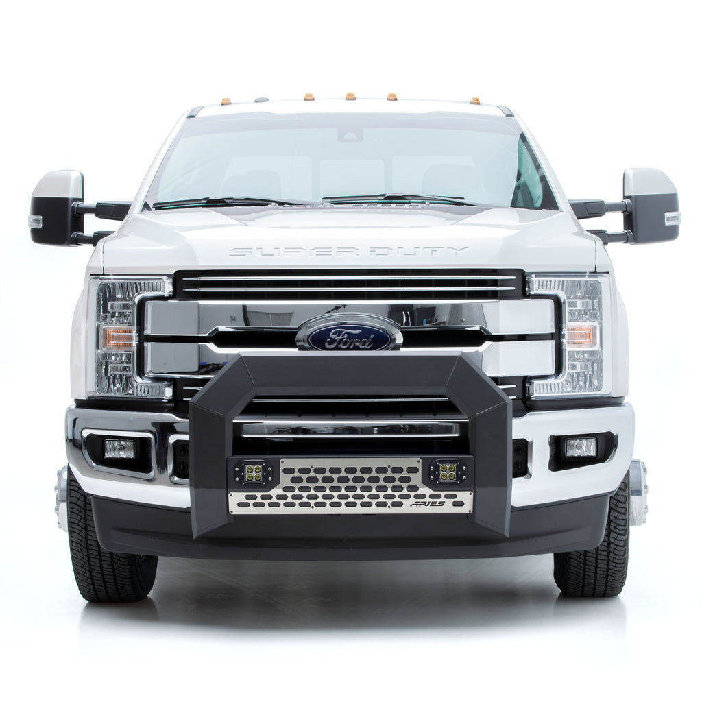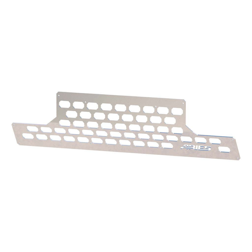 The AdvantEDGE bull bar boasts an all-aluminum construction and an aggressive look to complement the style of today's trucks. It is made with eight-sided, extruded aluminum tubing to be strong, lightweight and rust-free, and it features a tough powder coat finish in your choice of carbide black or chrome for maximum corrosion resistance. This raw aluminum cover plate is designed to replace the powder-coated AdvantEDGE bull bar cover plate and allow for ultimate customization. It can be painted any color to complement the look of your vehicle, and it comes with mounting hardware for easy installation. This cover plate is intended to fit AdvantEDGE bull bars with integrated, flush-mount LEDs.