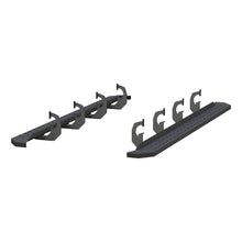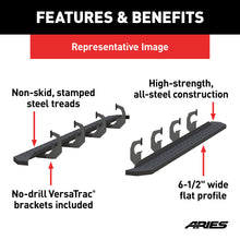 Powerful, definitive and uncompromising as a mountain ridge, ARIES RidgeStep running boards are made for those who gets it done, day after day. With their solid, all-steel construction, non-skid treads and tough powder coat finish, RidgeStep running boards are made to finish the job. Installation of these running boards is easy and secure because they use the ARIES VersaTrac mounting system. The underside of each board is equipped with a channel that accepts a set of heavy-duty bracket inserts. The inserts move along the channel to fit your truck, and the mounting hardware provides a secure attachment. These running boards are designed to fit specific years of the Chevrolet Silverado 1500, 2500 HD, 3500 HD or Suburban and GMC Sierra 1500, 2500 HD, 3500 HD or Yukon XL (NOTE: This set of running boards includes vehicle-specific VersaTrac mounting brackets. See the application information to verify compatibility with your vehicle). ARIES RidgeStep running boards are not only made for easier installation, but they are also built to face the harsh elements of the commercial job. They feature high-strength, solid steel construction for a step that can keep up with those steel-toe boots, and they are completely without plastic parts, meaning they will not crack or fade over time. Their stamped, all-steel tread offers a 6-1/2" wide, non-skid surface that will never wear down no matter how many times you climb in and out of your truck. The end caps are also made from steel and are welded to contour to the body of your truck for a professional finish. RidgeStep running boards come with a unique E-coat and textured black powder coat finish to not only withstand rust but also to hide minor scratches and grime.