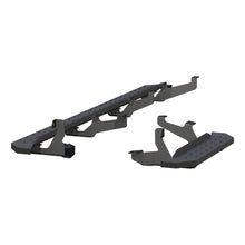 Powerful, definitive and uncompromising as a mountain ridge, ARIES RidgeStep running boards are made for those who gets it done, day after day. With their solid, all-steel construction, non-skid treads and tough powder coat finish, RidgeStep running boards are made to finish the job. Installation of these running boards is easy and secure because they use the ARIES VersaTrac mounting system. The underside of each board is equipped with a channel that accepts a set of heavy-duty bracket inserts. The inserts move along the channel to fit your cargo van, and the mounting hardware provides a secure attachment. These running boards are designed to fit specific years of the Ram ProMaster 2500 and 3500 (NOTE: This set of running boards includes vehicle-specific VersaTrac mounting brackets. See the application information to verify compatibility with your vehicle). ARIES RidgeStep running boards are not only made for easier installation, but they are also built to face the harsh elements of the commercial job. They feature high-strength, solid steel construction for a step that can keep up with those steel-toe boots, and they are completely without plastic parts, meaning they will not crack or fade over time. Their stamped, all-steel tread offers a 6-1/2" wide, non-skid surface that will never wear down no matter how many times you climb in and out of your work van. The end caps are also made from steel and are welded to contour to the body of your van for a professional finish. RidgeStep running boards come with a unique E-coat and textured black powder coat finish to not only withstand rust but also to hide minor scratches and grime.