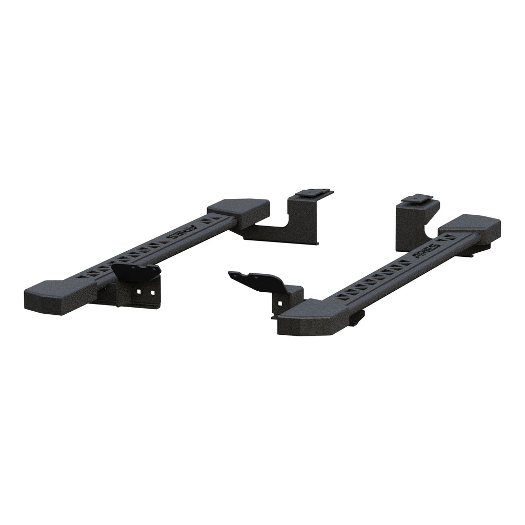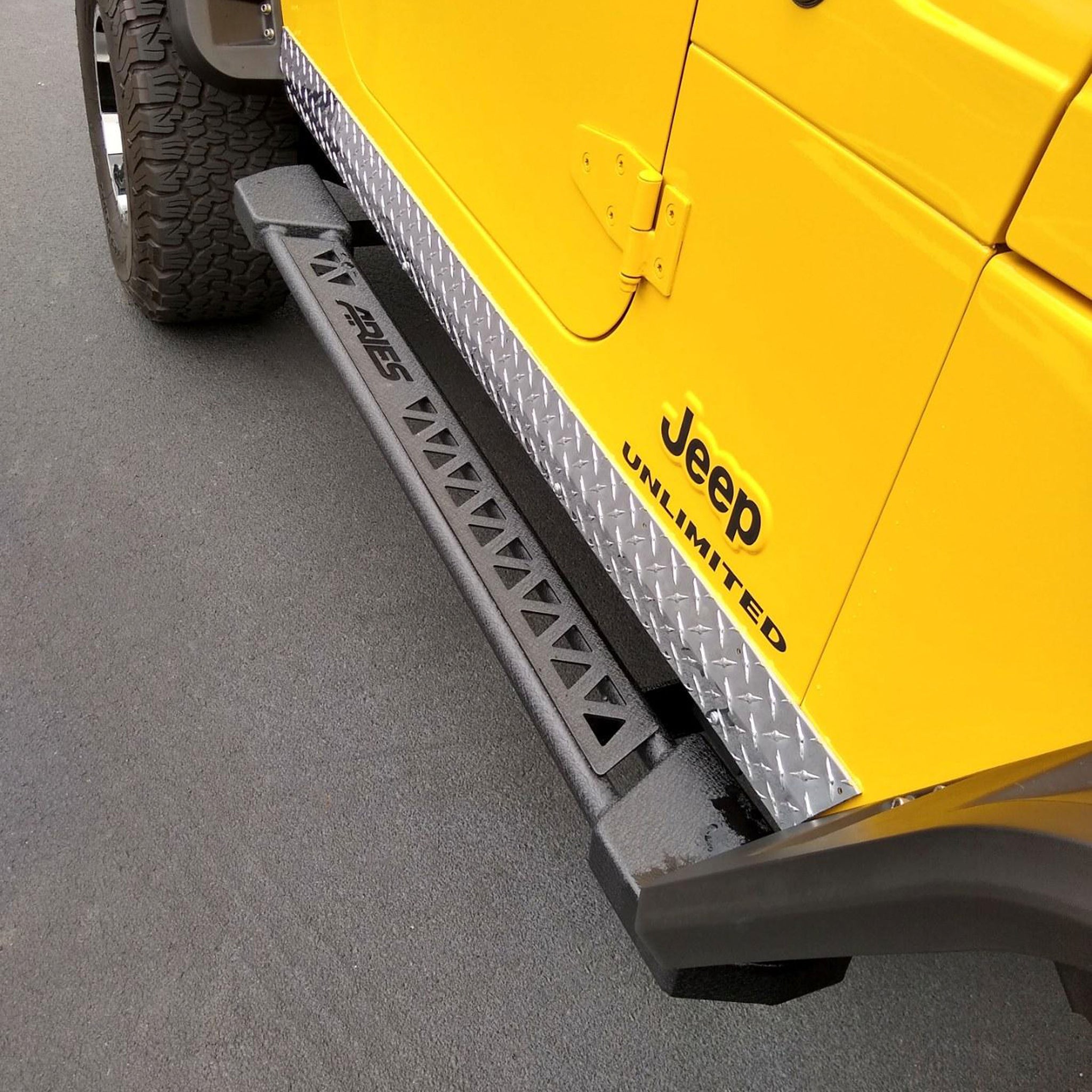 Sometimes side bars, nerf bars and running boards just aren't the right fit for the off-roader. When your vehicle is beefed up and built out the way it was born to be, you need a step up from ordinary. ARIES Rocker Step running boards are the ideal side accessory for the off-road-style truck, Jeep or SUV, featuring extra protection for your rocker panels, a convenient 3" wide step up and enough ground clearance to allow you to hold nothing back. While many rocker panel protectors are simple steel panels or tubes, the ARIES Rocker Step is something more. In addition to its all-steel construction, it has a wide, flat profile that provides two key advantages. First, it offers a convenient, comfortable step up into your vehicle The double-tube layout and welded top plate create a sturdy, 3" wide stepping surface. Second, the flat design offers added ground clearance. Unlike some side bars that are mounted down and away from the vehicle, ARIES Rocker Step running boards are set high enough to clear brush, boulders and other off-road debris. They also feature a durable E-coat and textured black powder coat finish to resist rust and hide scratches and grime. Mounting ARIES Rocker Step running boards is fast and easy. They come with vehicle-specific mounting brackets, pre-welded into place, to provide reliable footing and a custom fit on your vehicle. This particular set of Rocker Step running boards fits specific years of the Jeep Wrangler (see application info to verify fitment). The brackets install using pre-existing mounting locations to eliminate the need for drilling and cut down on installation time. ARIES Rocker Steps are sold in pairs for the driver and passenger side and come with all necessary mounting hardware.