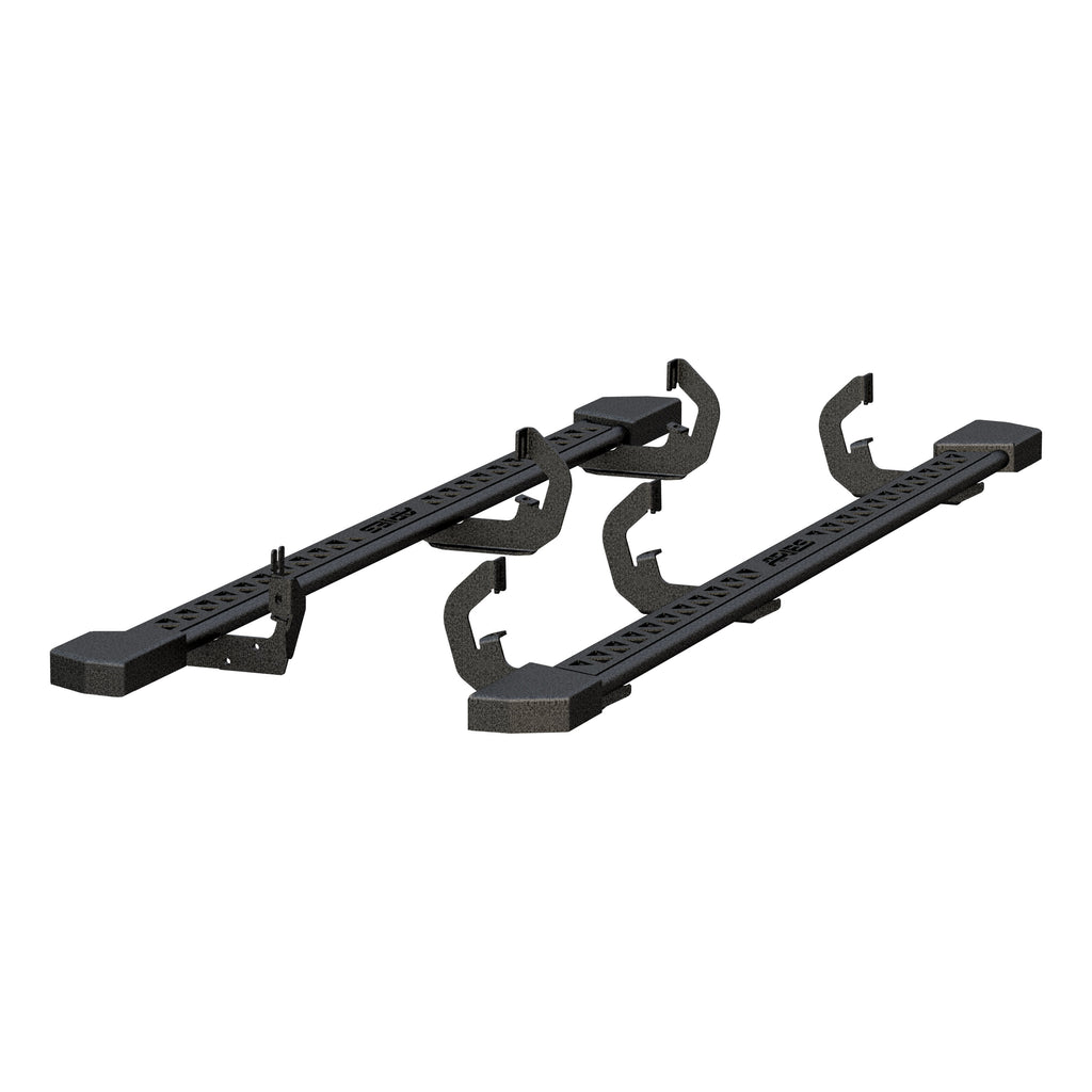 Sometimes side bars, nerf bars and running boards just aren't the right fit for the off-roader. When your vehicle is beefed up and built out the way it was born to be, you need a step up from ordinary. ARIES Rocker Step running boards are the ideal side accessory for the off-road-style truck, Jeep or SUV, featuring extra protection for your rocker panels, a convenient 3" wide step up and enough ground clearance to allow you to hold nothing back. While many rocker panel protectors are simple steel panels or tubes, the ARIES Rocker Step is something more. In addition to its all-steel construction, it has a wide, flat profile that provides two key advantages. First, it offers a convenient, comfortable step up into your vehicle The double-tube layout and welded top plate create a sturdy, 3" wide stepping surface. Second, the flat design offers added ground clearance. Unlike some side bars that are mounted down and away from the vehicle, ARIES Rocker Step running boards are set high enough to clear brush, boulders and other off-road debris. They also feature a durable E-coat and textured black powder coat finish to resist rust and hide scratches and grime. Mounting ARIES Rocker Step running boards is fast and easy. They come with vehicle-specific mounting brackets, pre-welded into place, to provide reliable footing and a custom fit on your vehicle. This particular set of Rocker Step running boards fits specific years of the Chevy Silverado 1500, 1500 Classic, 2500 HD, 2500 HD Classic, 3500 HD or 3500 Classic and GMC Sierra 1500, 1500 Classic, 1500 HD Classic, 2500 HD, 2500 HD Classic, 3500 HD or 3500 Classic (see application info to verify fitment). The brackets install using pre-existing mounting locations to eliminate the need for drilling and cut down on installation time. ARIES Rocker Steps are sold in pairs for the driver and passenger side and come with all necessary mounting hardware.
