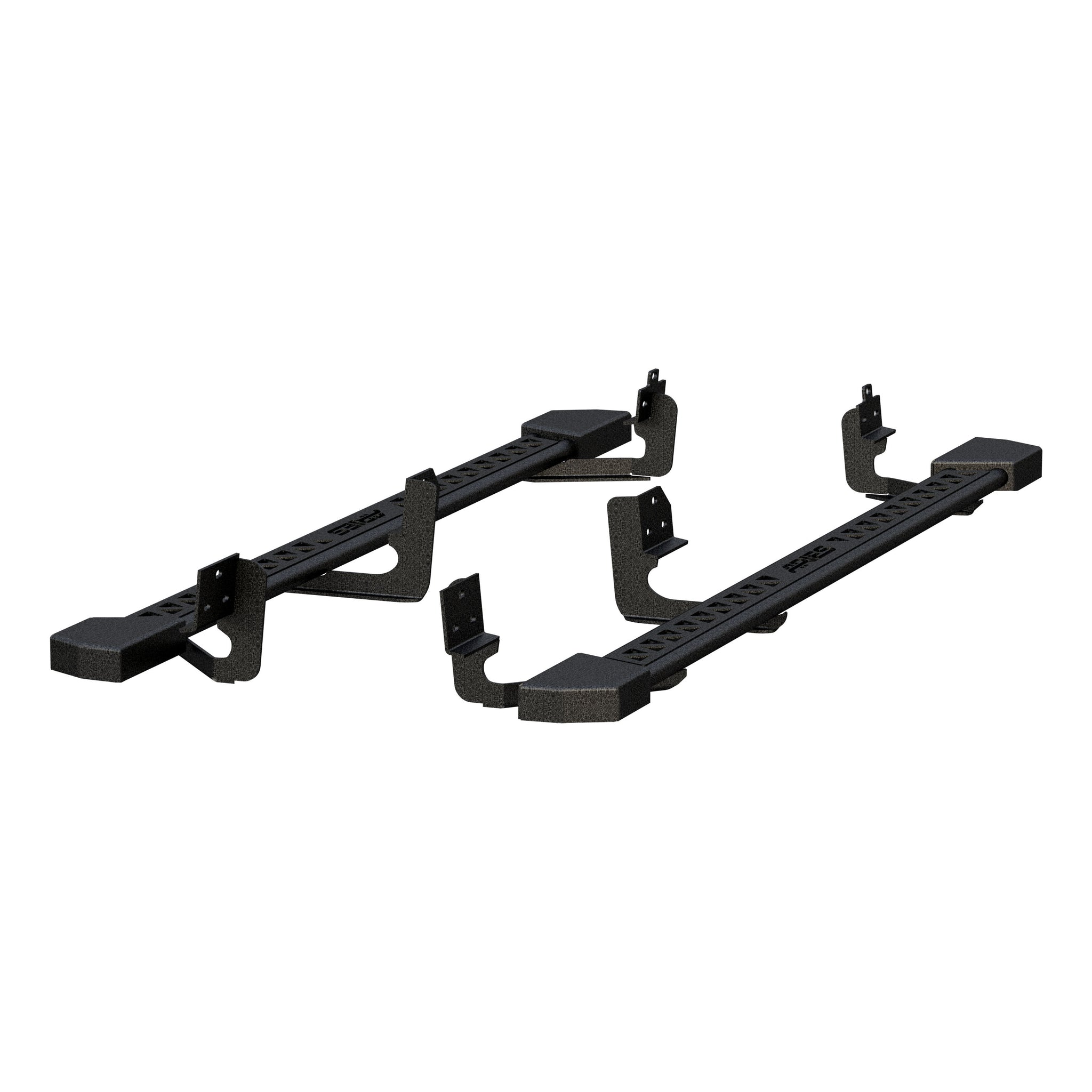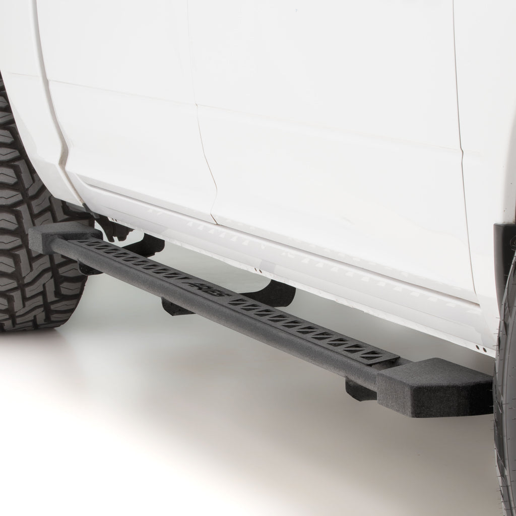 Sometimes side bars, nerf bars and running boards just aren't the right fit for the off-roader. When your vehicle is beefed up and built out the way it was born to be, you need a step up from ordinary. ARIES Rocker Step running boards are the ideal side accessory for the off-road-style truck, Jeep or SUV, featuring extra protection for your rocker panels, a convenient 3" wide step up and enough ground clearance to allow you to hold nothing back. While many rocker panel protectors are simple steel panels or tubes, the ARIES Rocker Step is something more. In addition to its all-steel construction, it has a wide, flat profile that provides two key advantages. First, it offers a convenient, comfortable step up into your vehicle The double-tube layout and welded top plate create a sturdy, 3" wide stepping surface. Second, the flat design offers added ground clearance. Unlike some side bars that are mounted down and away from the vehicle, ARIES Rocker Step running boards are set high enough to clear brush, boulders and other off-road debris. They also feature a durable E-coat and textured black powder coat finish to resist rust and hide scratches and grime. Mounting ARIES Rocker Step running boards is fast and easy. They come with vehicle-specific mounting brackets, pre-welded into place, to provide reliable footing and a custom fit on your vehicle. This particular set of Rocker Step running boards fits specific years of the Ram 1500 and Dodge Ram 1500 (see application info to verify fitment). The brackets install using pre-existing mounting locations to eliminate the need for drilling and cut down on installation time. ARIES Rocker Steps are sold in pairs for the driver and passenger side and come with all necessary mounting hardware.