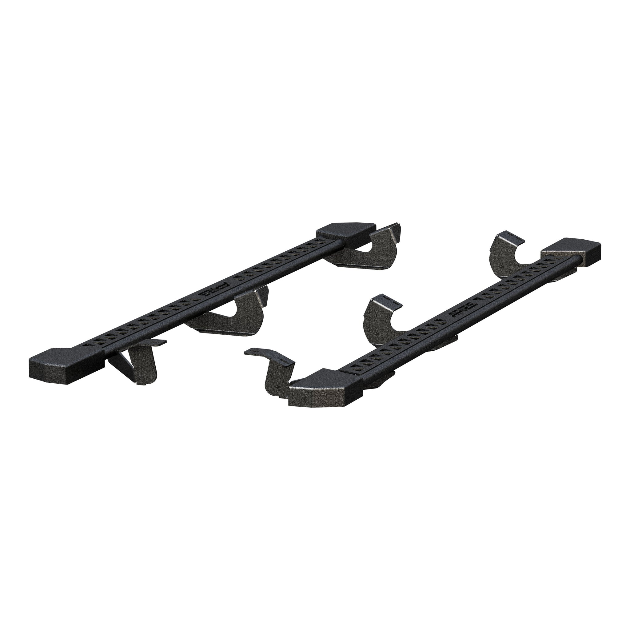 Sometimes side bars, nerf bars and running boards just aren't the right fit for the off-roader. When your vehicle is beefed up and built out the way it was born to be, you need a step up from ordinary. ARIES Rocker Step running boards are the ideal side accessory for the off-road-style truck, Jeep or SUV, featuring extra protection for your rocker panels, a convenient 3" wide step up and enough ground clearance to allow you to hold nothing back. While many rocker panel protectors are simple steel panels or tubes, the ARIES Rocker Step is something more. In addition to its all-steel construction, it has a wide, flat profile that provides two key advantages. First, it offers a convenient, comfortable step up into your vehicle The double-tube layout and welded top plate create a sturdy, 3" wide stepping surface. Second, the flat design offers added ground clearance. Unlike some side bars that are mounted down and away from the vehicle, ARIES Rocker Step running boards are set high enough to clear brush, boulders and other off-road debris. They also feature a durable E-coat and textured black powder coat finish to resist rust and hide scratches and grime. Mounting ARIES Rocker Step running boards is fast and easy. They come with vehicle-specific mounting brackets, pre-welded into place, to provide reliable footing and a custom fit on your vehicle. This particular set of Rocker Step running boards fits specific years of the Toyota Tacoma (see application info to verify fitment). The brackets install using pre-existing mounting locations to eliminate the need for drilling and cut down on installation time. ARIES Rocker Steps are sold in pairs for the driver and passenger side and come with all necessary mounting hardware.