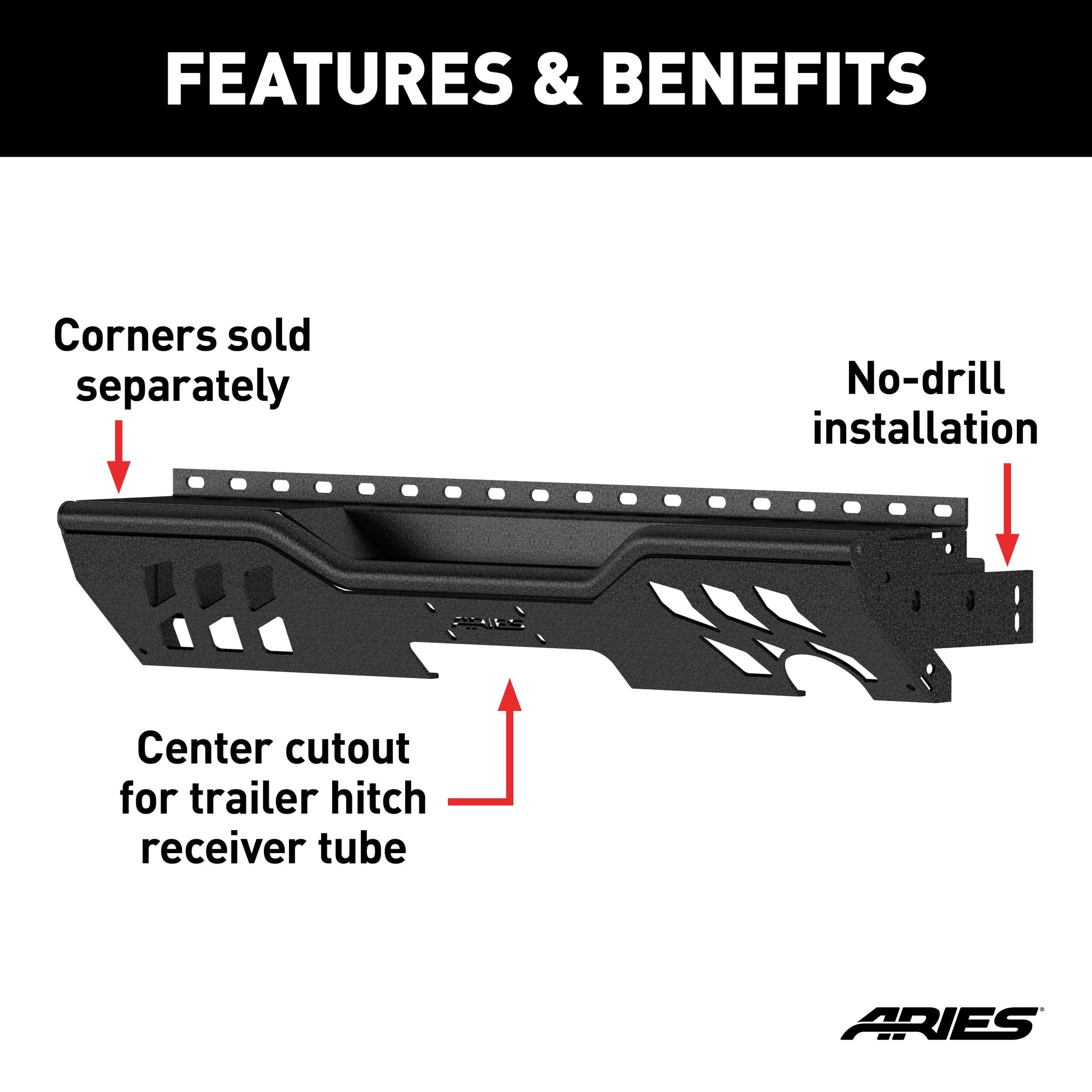 - Center cutout for trailer hitch receiver tube