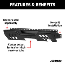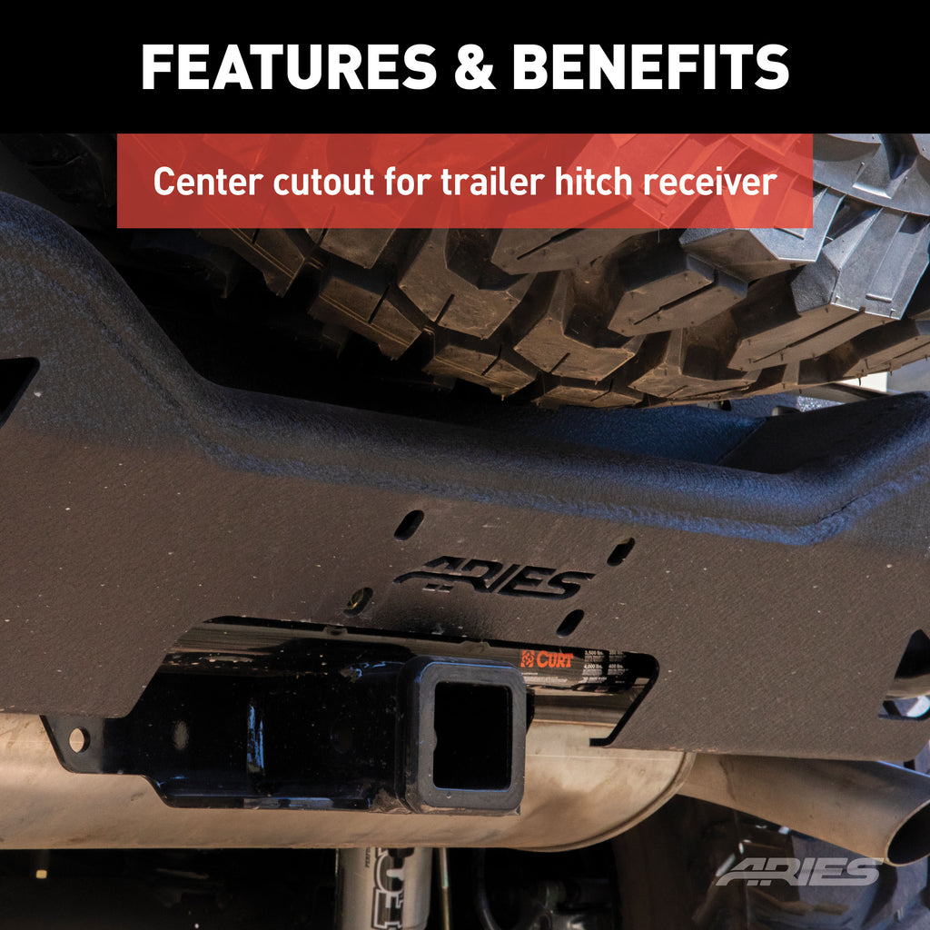 The ARIES TrailChaser Jeep bumper is unlike any other bumper for the Jeep Wrangler JK because it features a modular design. Each piece can be attached or swapped out as desired, giving you complete freedom of customization. This particular piece includes the rear center section only and is intended to accept corners (sold separately). It is constructed from high-strength carbon steel and has a unique, textured black powder coat finish for maximum rust resistance. It is also available in powder-coated aluminum.