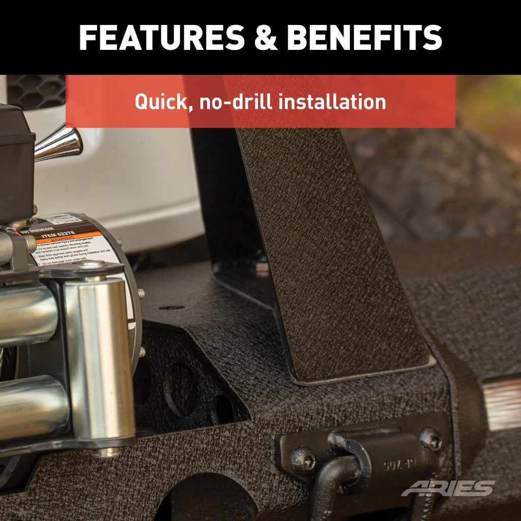 - Quickly and securely bolts onto the bumper for a no-drill installation