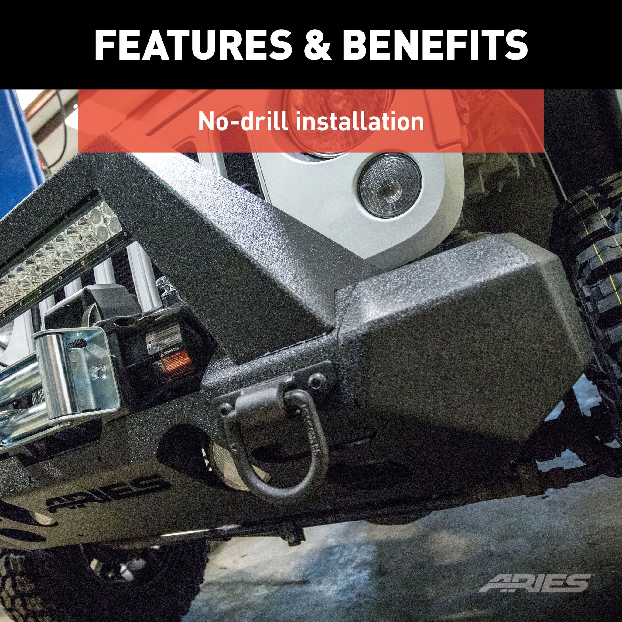 - Quickly and securely bolts onto the bumper for a no-drill installation