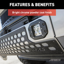 The ARIES AdvantEDGE bull bar is a unique, modern truck bull bar option, featuring a patented design, a highly corrosion-resistant construction and an easy, no-drill installation. For ultimate customization, it also comes with integrated LED lights and two finish options. The AdvantEDGE bull bar with lights is unlike all other bull bars for trucks. It's octagonal tubing and angular, A-frame shape give it an aggressive aftermarket look and complement the look of the modern pickup truck. To maintain a long-lasting, consistent finish, the AdvantEDGE bull bar is constructed from extruded aluminum alloy, making it strong, lightweight and rust-free. It is also protected in a durable powder coat finish for additional corrosion resistance, and it is available in two color choices: chrome powder coat or carbide black powder coat. To add utility and an unmistakable accent to your truck, this bull bar also features flush-mount LED lights. These 2" square lights are constructed with grade-A LED chips and IP68 and IP69K waterproof and dustproof ratings. They feature flood beams and provide 2,200 lumens. The AdvantEDGE bull bar is also available without lights. For fast and easy installation, the AdvantEDGE bull bar with lights is made vehicle-specific. This allows the bull bar to mount securely with no drilling required. This particular bull bar fits specific years of the Ford F-150 (see application info to verify fitment). It comes with high-strength powder-coated steel brackets and a waterproof wiring harness for a complete installation. The AdvantEDGE bull bar is designed to complement the rest of the AdvantEDGE series, including the AdvantEDGE headache rack and AdvantEDGE side bars.