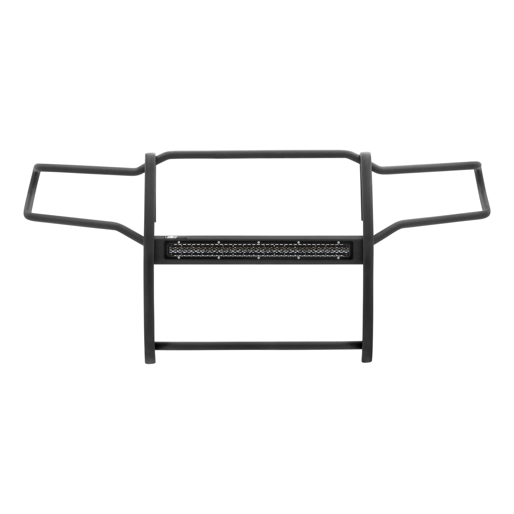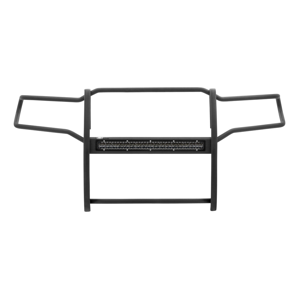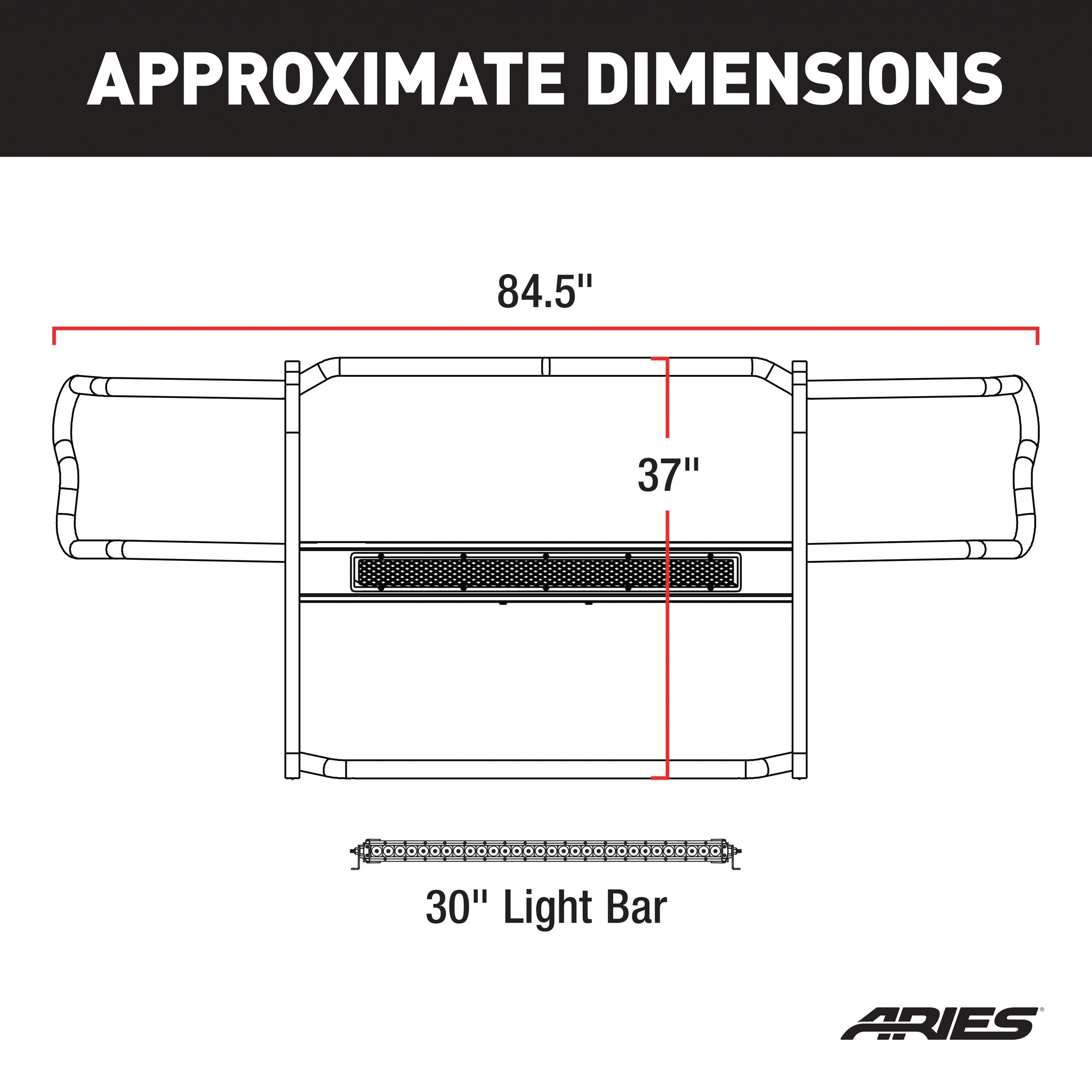 The ARIES Pro Series grille guard is unlike any other grille guard or brush guard on the road today because of its patented center crossbar. The ARIES Pro Series grille guard has a unique center crossbar that houses an LED light bar, allowing you to truly set your truck apart from all others. Rather than using a set of light clips or forcing you to drill holes into the frame, the aerodynamic crossbar of the Pro Series grille guard is the light bar housing itself. It uses a 30" slotted channel bracket to mount the included 30" LED light bar #1501264. The bracket can also accept other single-row light bars (some 30" light bars may not fit). The crossbar mount can also articulate, allowing you to position the light beam at any angle you prefer. Integrating the channel mount into the crossbar housing also keeps the light bar protected from the elements. To further stylize your truck, the Pro Series grille guard also comes with an interchangeable grille guard cover plate. Included with each grille guard is a black mesh cover plate that easily bolts on and provides added security for your aftermarket lights. The mesh cover plate can be swapped out with other cover plate options, including five different styles and two finishes. Solid construction should be an essential feature of any grille guard, and the Pro Series grille guard is more than qualified. It has a one-piece design of 1/4" thick welded plates and 1-1/2" mandrel-bent carbon steel tubing. We also finish each Pro Series grille guard in a highly durable, dual-layer E-coat and textured black powder coat, giving it resilience to rust and scratches. This unique finish also helps hide minor scratches and grime to maintain a clean look. ARIES Pro Series grille guards are made vehicle-specific for seamless integration with the factory bumper and an easy, no-drill installation. This grille guard fits select model years of the Toyota Sequoia and Toyota Tundra (see application info to verify fitment).