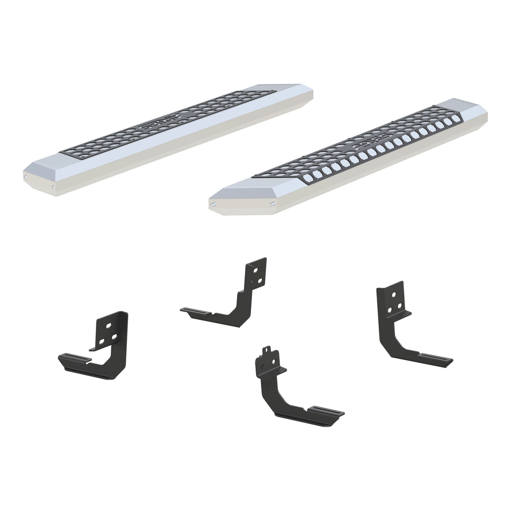 - Heavy-duty, powder-coated steel mounting brackets for a solid step