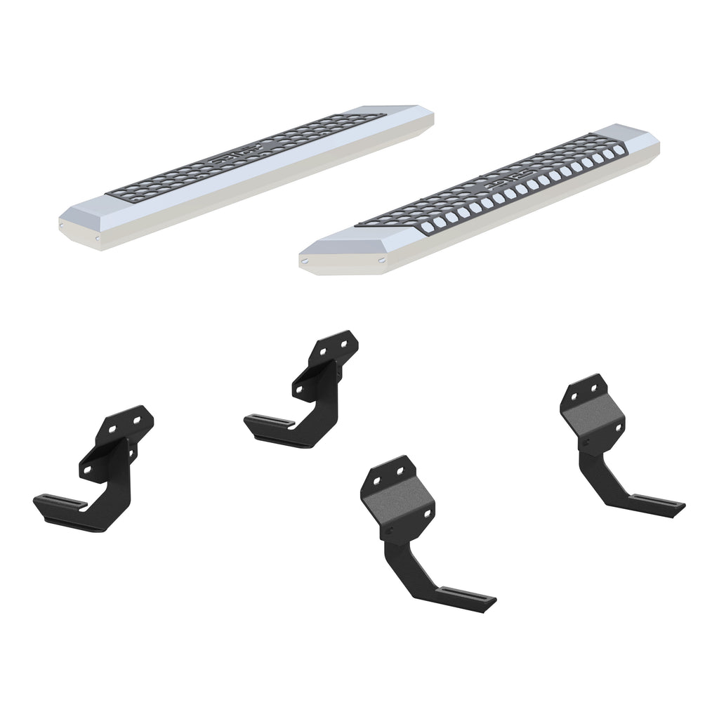 - Heavy-duty, powder-coated steel mounting brackets for a solid step