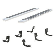 ARIES AdvantEDGE side bars do away with the common, rounded look of other side bars, nerf bars and running boards, featuring an angular, eight-sided tube profile and powder-coated all-aluminum construction. The angular edges provide a clear-cut, uncompromising accent for the look of today's trucks. Made from 5-1/2" wide, eight-sided, extruded aluminum tubing, AdvantEDGE running boards are strong, lightweight and impervious to rust, offering a solid step that is built to face the elements and outlast them. They also come with die-cast aluminum end caps and a stamped aluminum tread. The aluminum treads provide a long-lasting, non-skid stepping surface that will not crack or fade in the sun. ARIES AdvantEDGE side bars are also marked for their easy, custom-fit installation. They feature the ARIES VersaTrac mounting system with brackets that are made from powder-coated steel and built for specific vehicles. This particular set of custom running boards fits specific years of the Ram 2500 and 3500 (see application info to verify compatibility). The high-strength steel brackets mount using pre-existing holes, and the aluminum running boards attach to the brackets with heavy-duty hardware. The VersaTrac mounting system makes installation simple and customizable, allowing the side bars to be swapped out at any time with other side steps or running boards that use the VersaTrac system. Setting yourself apart is simple with the ARIES AdvantEDGE series. In addition to these truck side steps, we also offer the AdvantEDGE bull bar and AdvantEDGE headache rack, featuring the same all-aluminum construction and eight-sided tube profile. For a fully customized look to match your pickup, AdvantEDGE side bars are available in two finish options, including carbide black powder coat and chrome powder coat.