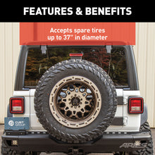 - Accepts oversized, off-road-style spare tires up to 37" in diameter