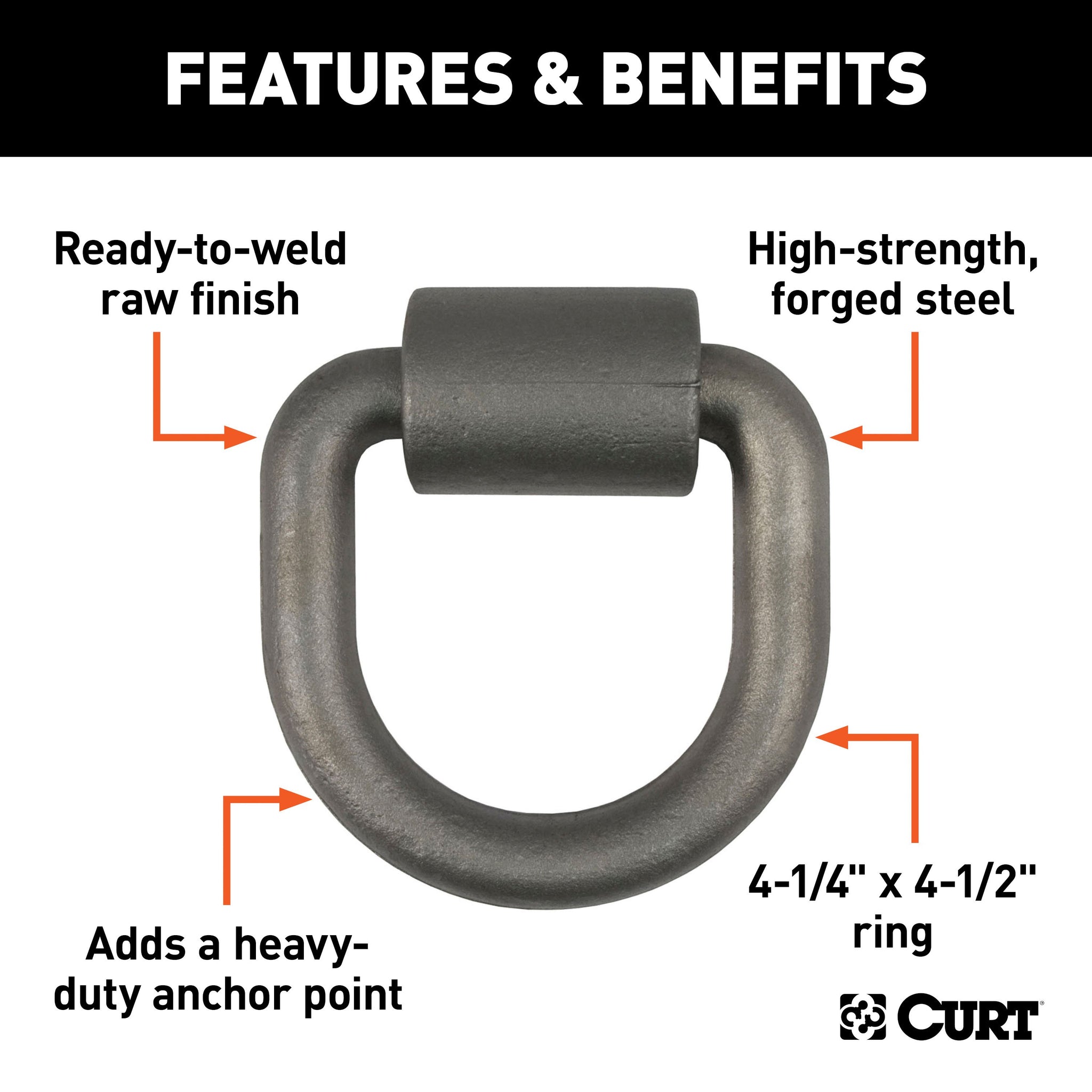 3" x 3" Weld-On Tie-Down D-Ring (8,833 lbs, Raw Steel)