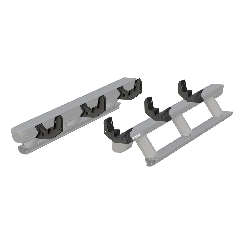 ARIES ActionTrac powered running boards are unique from other power side steps because they are actually two steps in one. This patented step-within-a-step design -- combined with a no-drill bracket installation, control module operation and powder-coated aluminum construction -- truly makes these retractable running boards an asset for the offroad truck or Jeep Wrangler, particularly as lifted truck steps. This package is comprised only of mounting brackets for ActionTrac powered running boards. The boards themselves must be purchased separately or as part of a kit. Each set of ActionTrac mounting brackets is designed for vehicle-specific installation for a custom fit.