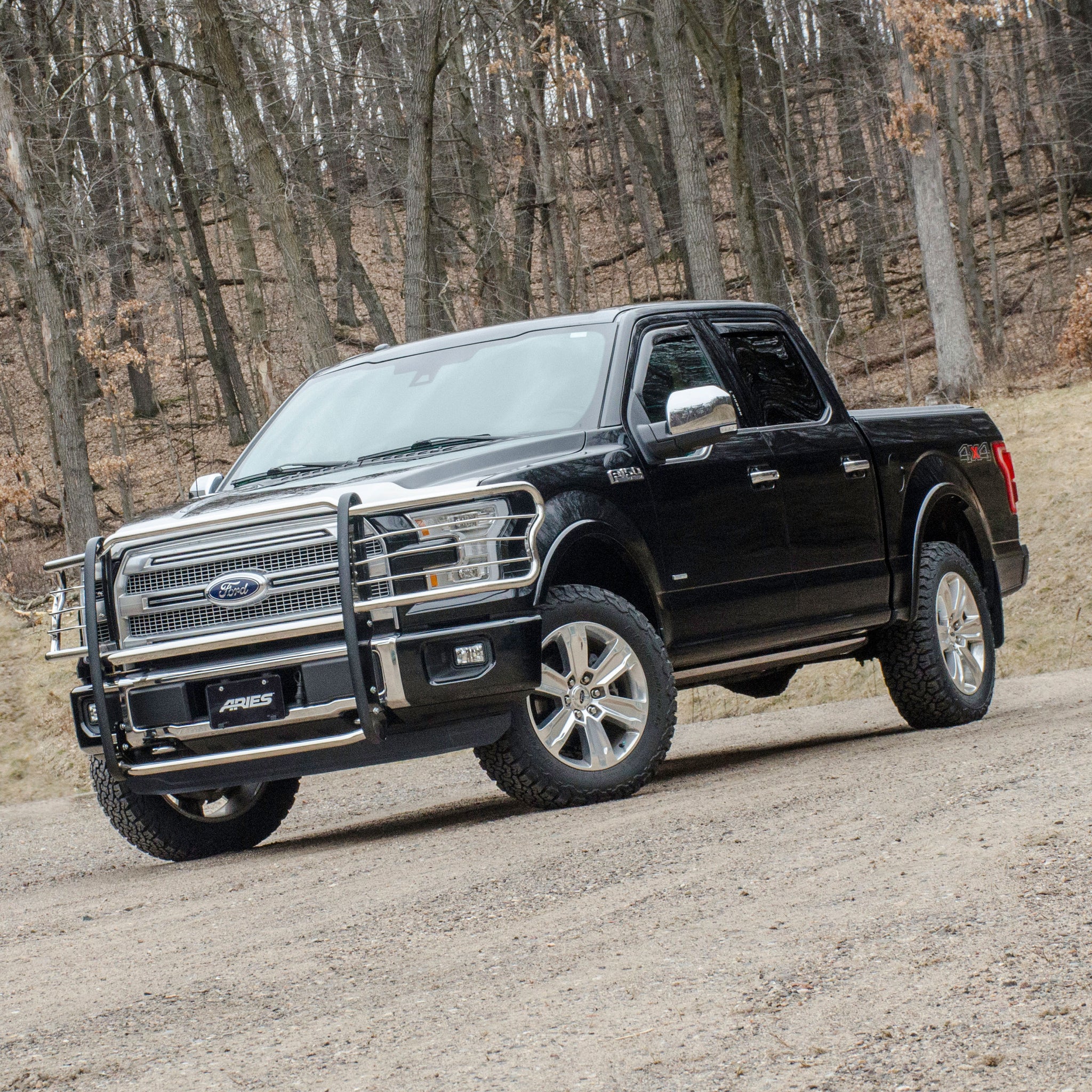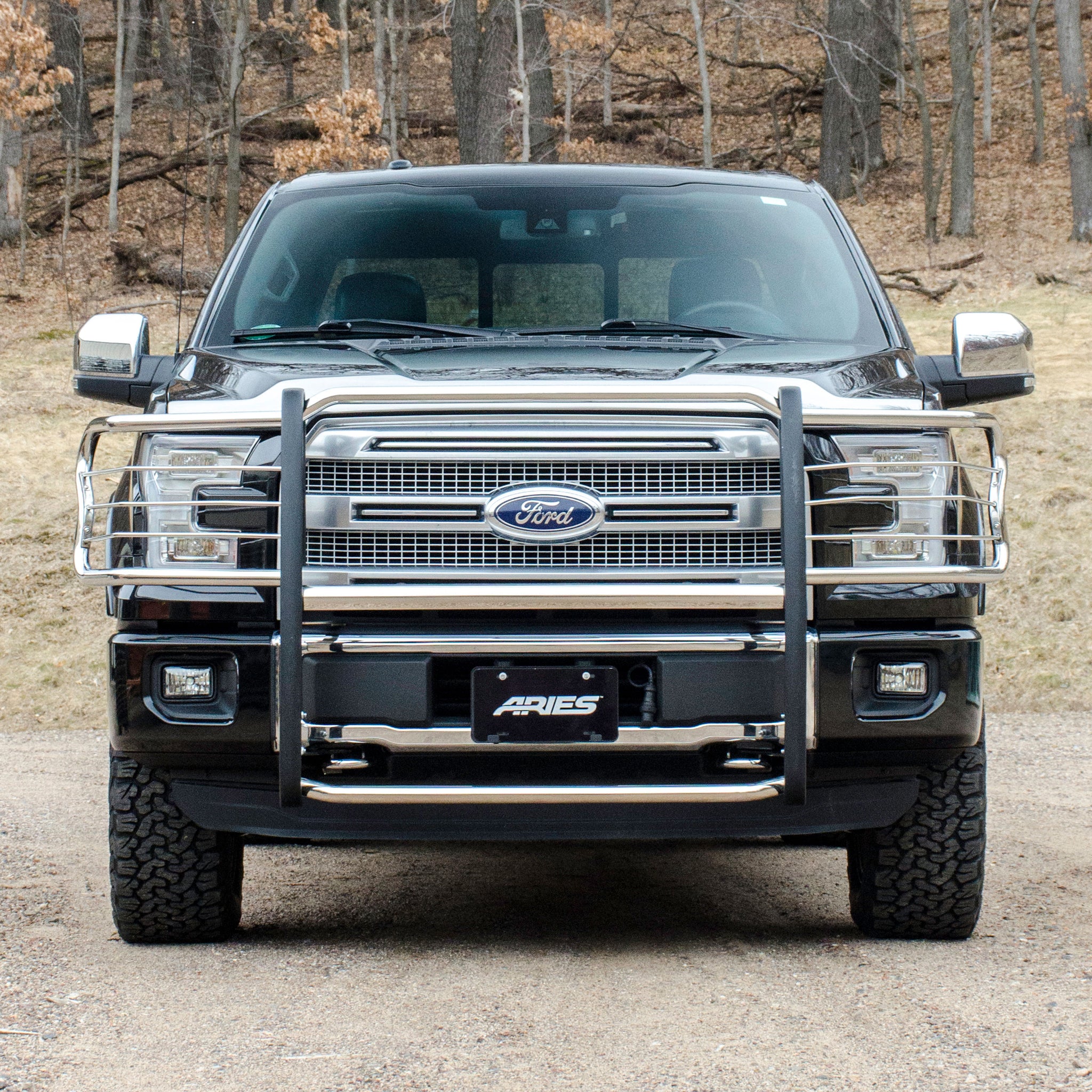 For the conqueror in every truck, Jeep or SUV owner, the ARIES grille guard offers the tough, trail-ready look you demand. It begins with a one-piece frame of 1/4" thick welded plates and 1-1/2" mandrel-bent tubing for a solid build. Each one is made with a vehicle-specific design for a better fit, easier install and more secure mounting. The side brush guards are custom-bent to contour to the profile of your vehicle, while the mounting brackets are positioned for a no-drill application. This means pre-existing factory holes are used to ensure optimum fitment and less vibration. This particular custom grille guard fits specific years of the Ford F150 (see application info to verify). The ARIES grille guard also makes it easy to customize the look of your vehicle. Not only does the crossbar have two pre-drilled holes for mounting aftermarket LED lights, but many of our grille guards are also available in two finish options -- polished stainless steel or semi-gloss black steel. The stainless steel grille guard is made with 304 stainless, being high in nickel content and truly resistant to rust and corrosion. This option comes with a mirror-like polished finish for a definitive shine. The semi-gloss black grille guard is made with high-strength carbon steel for added strength. It features a tough black powder coat finish to protect against rust, scratches and the elements. All ARIES grille guards also come with rubber stripping along the risers to protect the frame against scuffs and scratches.