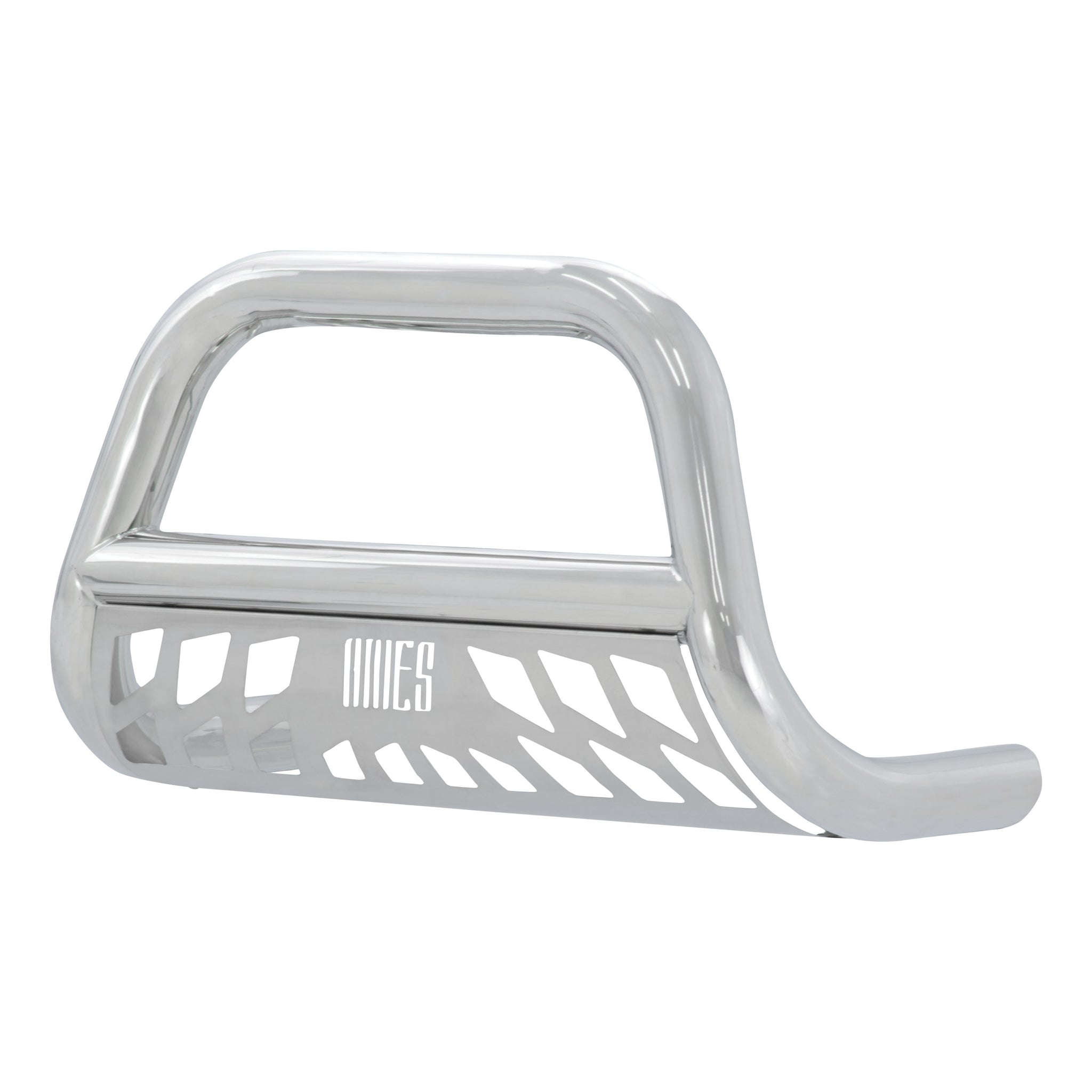 From the cattle rancher on the open range to the industrial man of the asphalt jungle to the jerky-jawing trail hog of the north woods, the ARIES 2-1/2" bull bar is made for those who face the uncertain road without fear. This particular model is constructed from 304 stainless steel. 304 stainless is high in nickel content, allowing the bull bar to easily resist water, road salt and rust and maintain its mirror-like polished finish in spite of the elements. Other available finishes include high-gloss black stainless steel, textured black steel and semi-gloss black steel. Customizing the look of your vehicle is simple with the ARIES 2-1/2" bull bar. It is equipped with pre-drilled light mounting holes and a removable skid plate. The center crossbar features two pre-drilled holes that readily accept an LED light bar or two LED work lights. The skid plate is made from 304 stainless steel and has a brushed finish to stop rust and hide scratches and scuffs. It also features an aggressive, ARIES-exclusive cutout pattern and can be removed for a customized look. Each ARIES 2-1/2" bull bar is made a vehicle-specific design, meaning that for each make and model, the bull bar has a custom bend and unique mounting brackets. This allows for the best possible fit on your vehicle and ensures solid attachment. The brackets also use pre-existing factory holes in the vehicle's frame to eliminate drilling, speed up installation and increase rigidity. This bull bar fits select model years of the Ford Ranger (see application info to verify fitment).