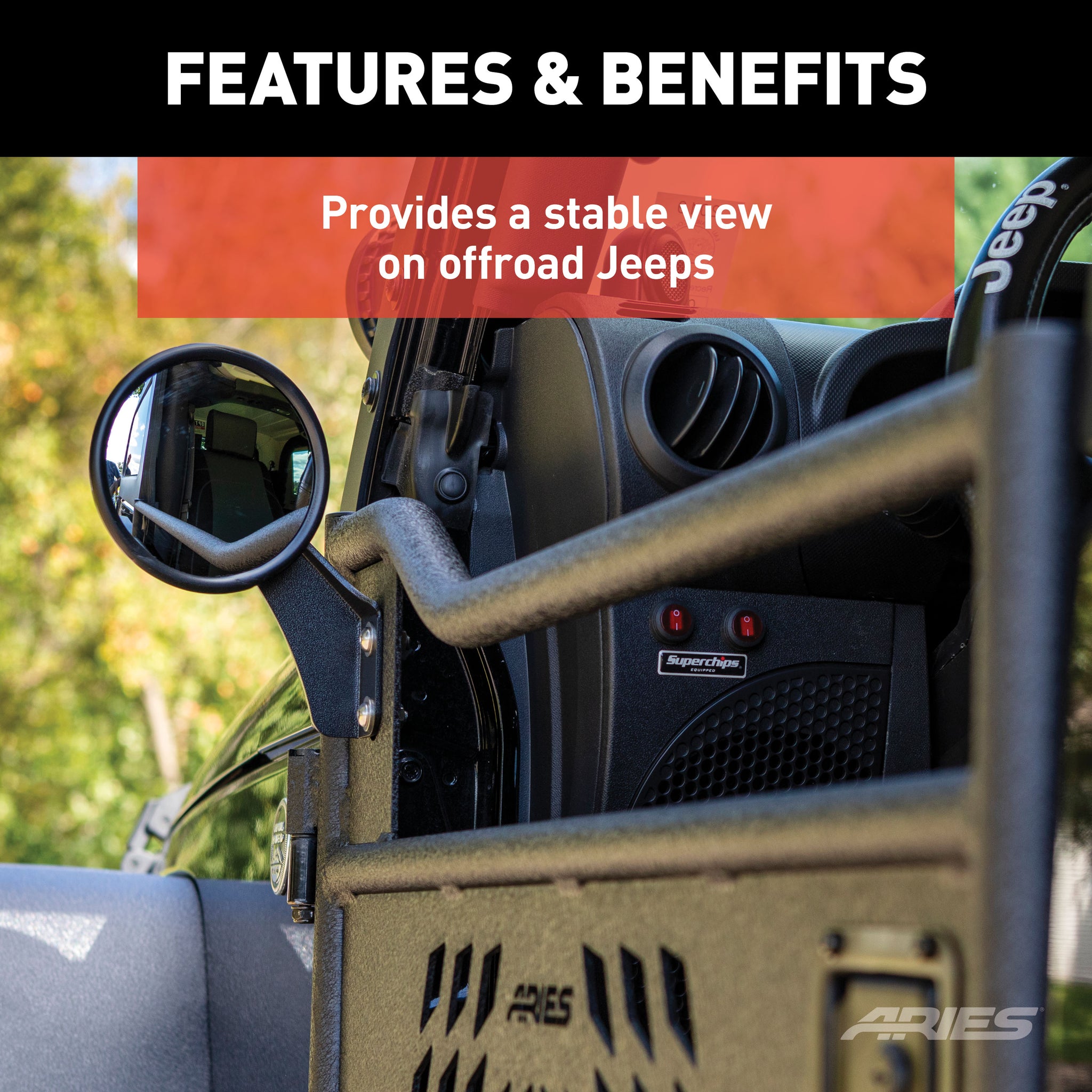 ARIES offroad Jeep tube door mirrors are highly vibration-resistant, providing a clear, stable view on...
