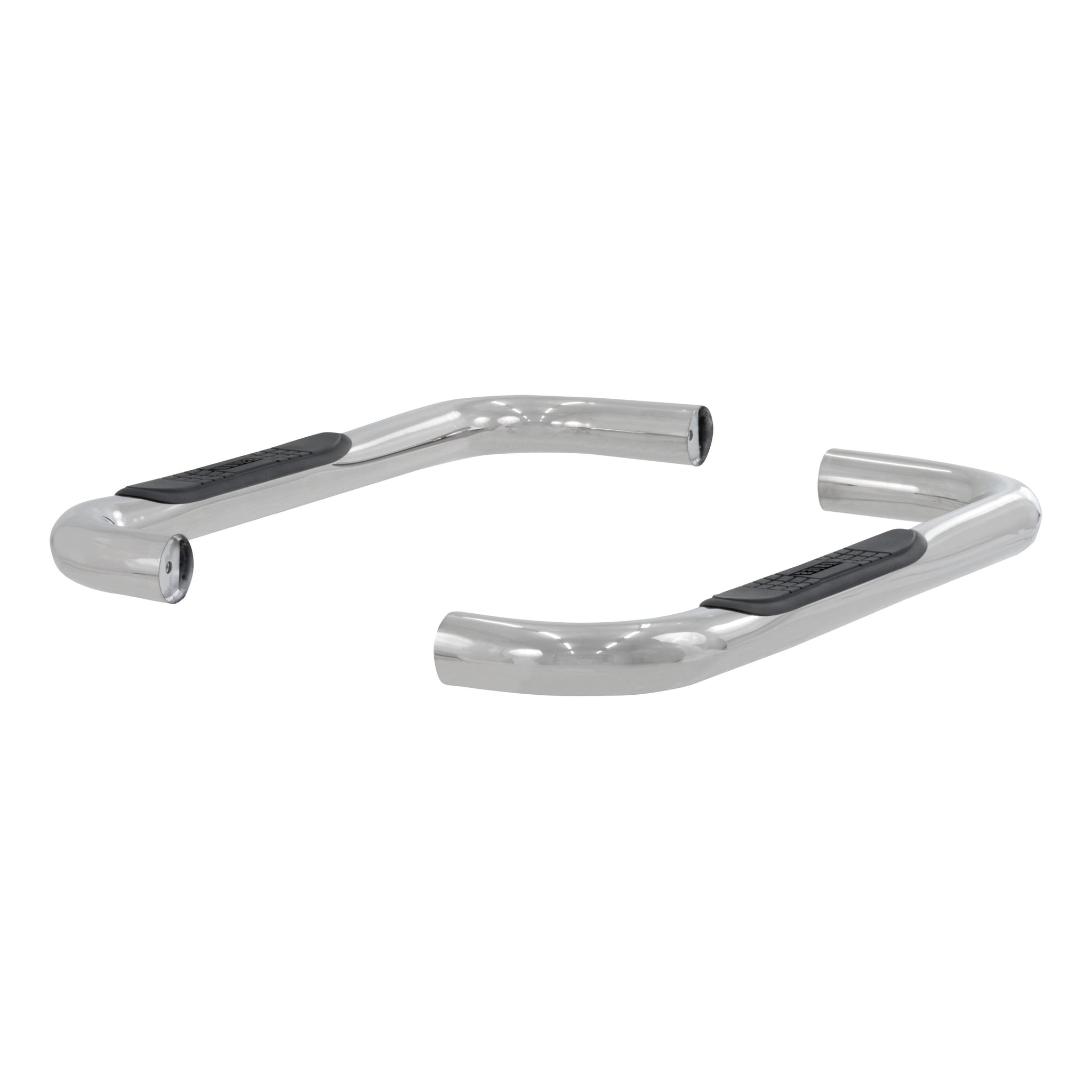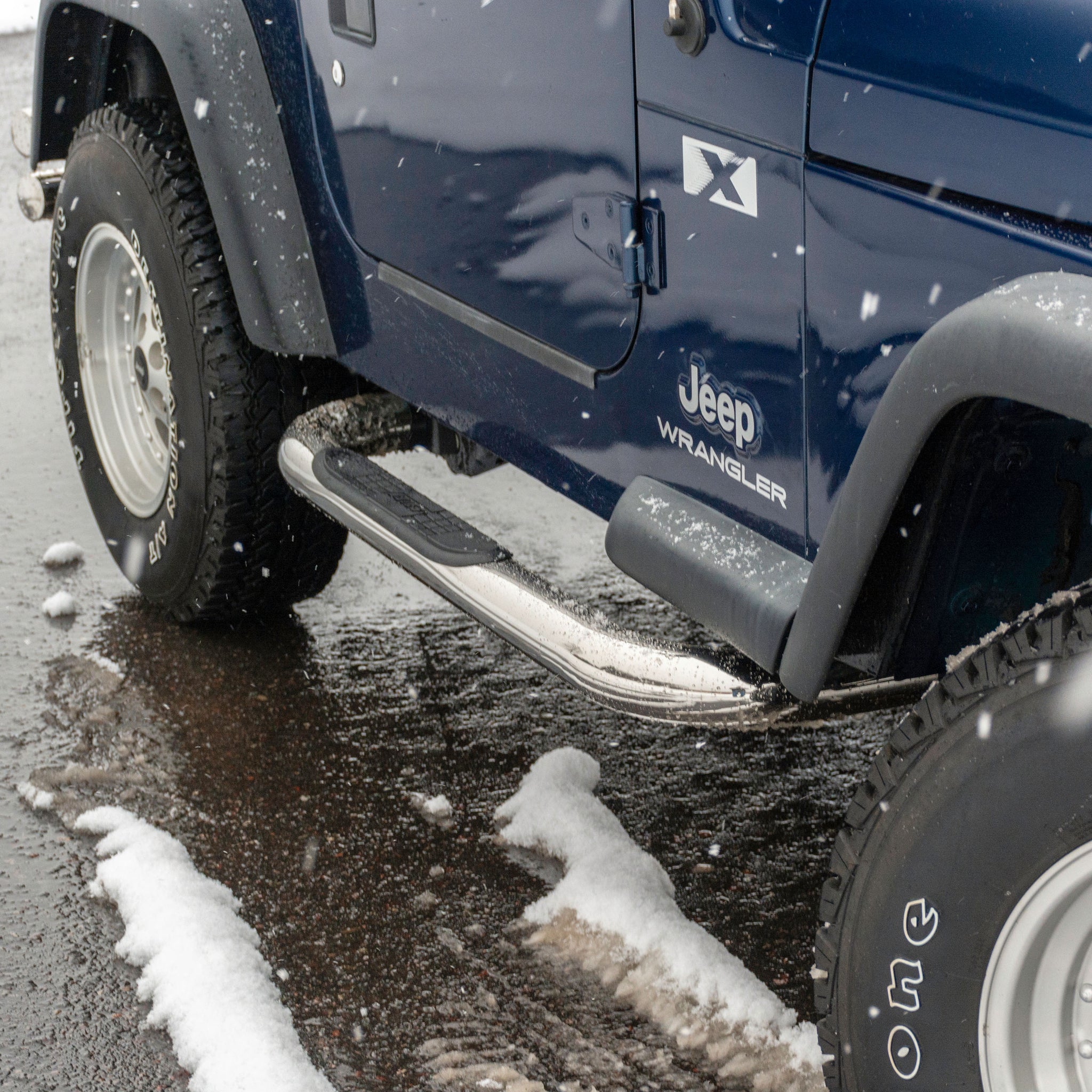 ARIES 3" side bars add a custom look and dependable footing to your truck, Jeep or SUV. They feature a classic style, a strong design and non-skid step pads. ARIES nerf bars are all made vehicle-specific for a custom, no-drill fit, and they are available in multiple finish options. This set of nerf bars is constructed from 304 stainless steel with a polished finish. Our 304 stainless steel is a true stainless with high nickel content, offering better corrosion resistance and a long-lasting finish. The polish is a triple application, resulting in a mirror-like shine to complement your vehicle. ARIES 3" round side bars also come with high-strength steel brackets and non-skid step pads. The mounting brackets -- as well as the side bars and step pads -- are custom-designed for specific makes and models to allow the nerf bars to contour to the lines of your vehicle. This ensures easy, no-drill installation and the strength necessary to provide solid footing. This particular set of custom nerf bars fits specific years of the Jeep Wrangler YJ and TJ (see application info to verify fitment). ARIES 3" round side bars also come with non-skid step pads made of polypropylene. These wide, custom-positioned step pads feature a textured pattern and cover a wide portion of the tubes to be more comfortable and high-traction, even in wet conditions.