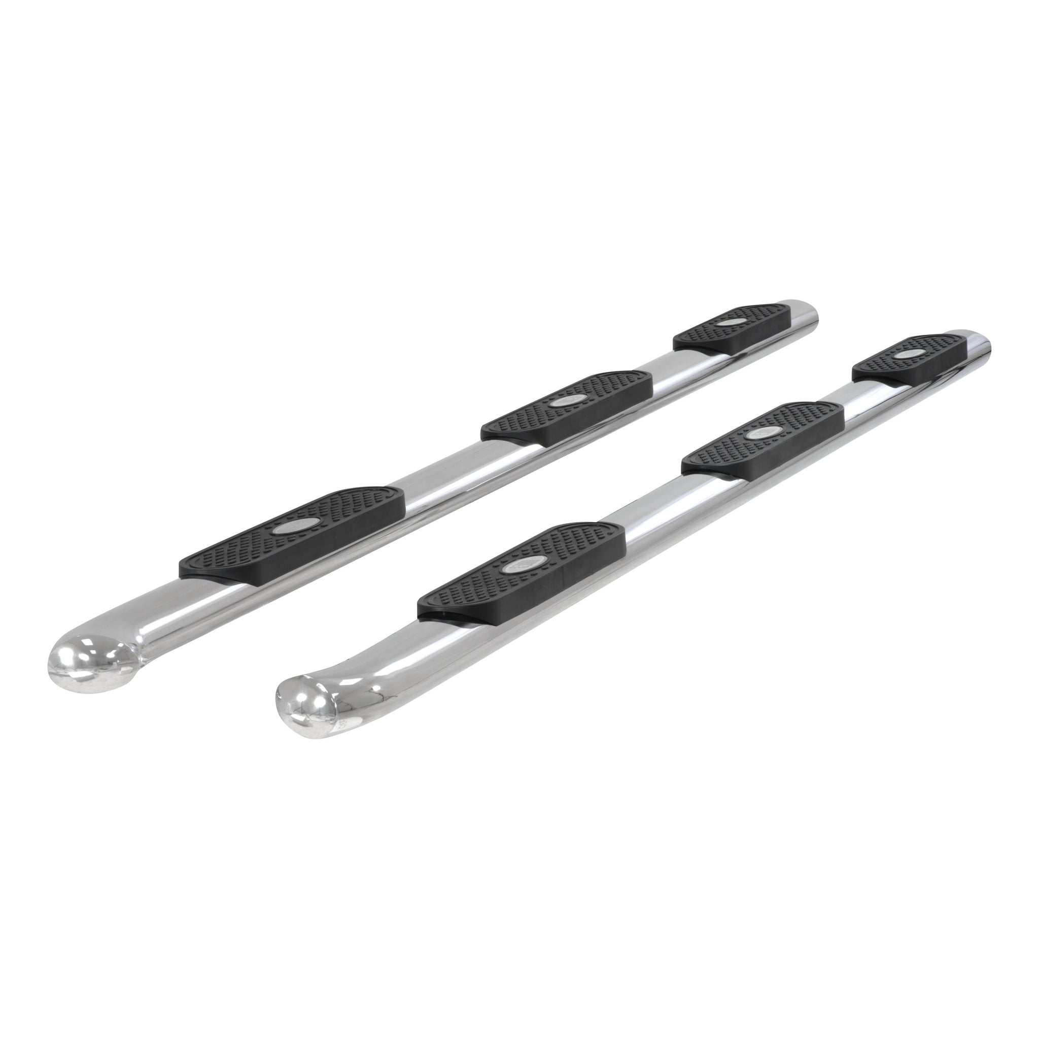 When you start and end your day turning the ignition of your truck, unreliable footing just is not an option. You need a step that can bear weight with ease, provide comfortable footing and look good doing it. ARIES 4" oval side bars are sleek, strong and custom-fitted to be a highly functional extension of your truck. For a variety of makes and models, 4" oval sides are a step up. ARIES 4" oval side bars are made with strong 4" elliptical tubing and are available in two different finish options to allow you full customization: polished stainless steel and black powder coat carbon steel. These 4" oval sides are a special wheel-to-wheel side bar option, featuring 304 stainless steel construction to be truly rust-resistant and a polished finish for a mirror-like shine. They are fitted with an extra step pad and are made to span the length of your truck's wheelbase for utility purposes and an enhanced appearance (NOTE: May leave extra space between the end of the side bars and the rear wheels). The extended step of our wheel-to-wheel side bars allows for a sturdy foothold and easy access to the truck bed. Something that sets the ARIES 4" oval side bar apart from all others is its blended end caps and OE-style bends. Rather than capping our side bars with a plastic cap, we offer a blended end cap for a smooth, finished appearance. ARIES 4" oval side bars are also fitted with raised step pads to provide a wide stepping surface. The polypropylene construction will not crack over time, and because it has a textured grip, the surface is highly resistant to slips and skids, even when wet. Installation of these ARIES 4" oval wheel-to-wheel side bars is quick and easy with custom-fitted mounting brackets and no drilling necessary.