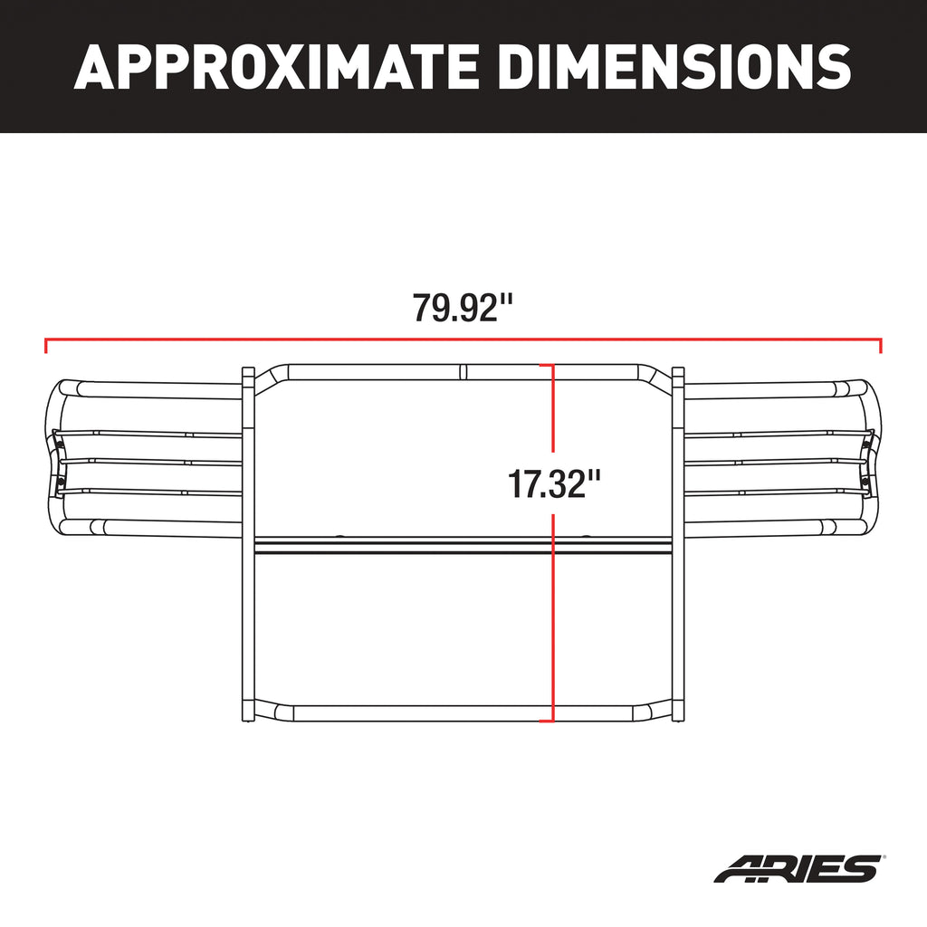 For the conqueror in every truck, Jeep or SUV owner, the ARIES grille guard offers the tough, trail-ready look you demand. It begins with a one-piece frame of 1/4" thick welded plates and 1-1/2" mandrel-bent tubing for a solid build. Each one is made with a vehicle-specific design for a better fit, easier install and more secure mounting. The side brush guards are custom-bent to contour to the profile of your vehicle, while the mounting brackets are positioned for a no-drill application. This means pre-existing factory holes are used to ensure optimum fitment and less vibration. This particular custom grille guard fits specific years of the Hummer H2 (see application info to verify). The ARIES grille guard also makes it easy to customize the look of your vehicle. They are available in two finish options -- polished stainless steel or semi-gloss black steel. The stainless steel grille guard is made with 304 stainless, being high in nickel content and truly resistant to rust and corrosion. This option comes with a mirror-like polished finish for a definitive shine. The semi-gloss black grille guard is made with high-strength carbon steel for added strength. It features a tough, dual-layer E-coat and black powder coat finish to protect against rust, scratches and the elements. All ARIES grille guards also come with rubber stripping along the risers to protect the frame against scuffs and scratches.