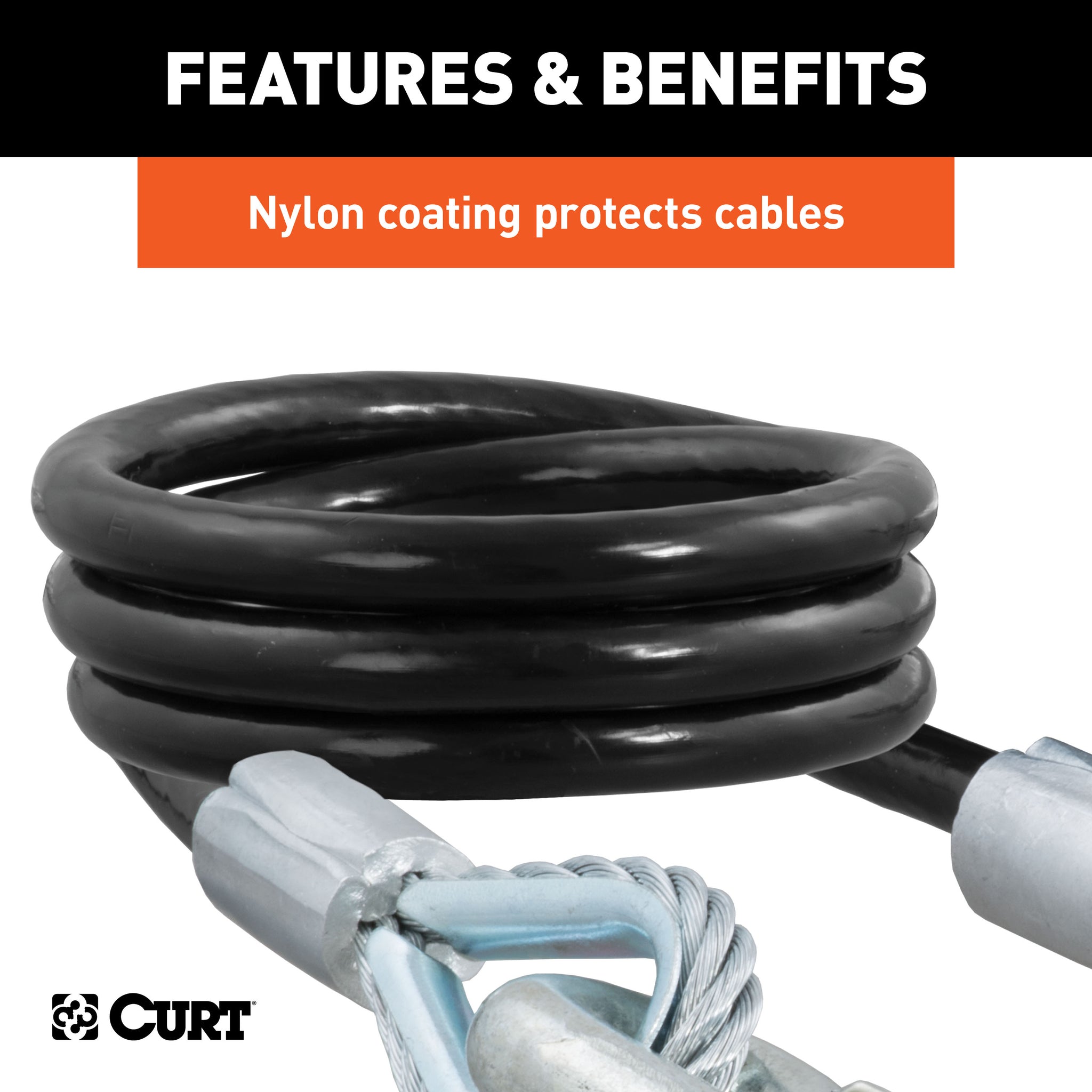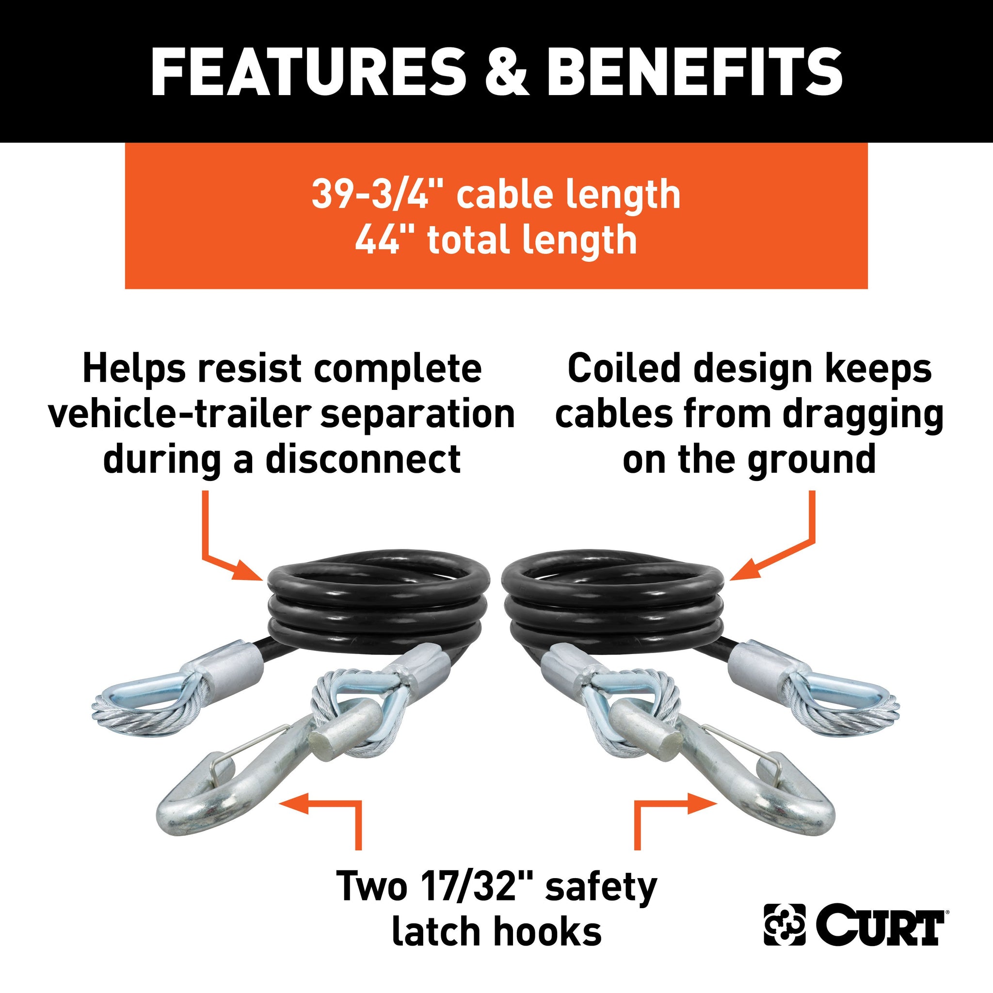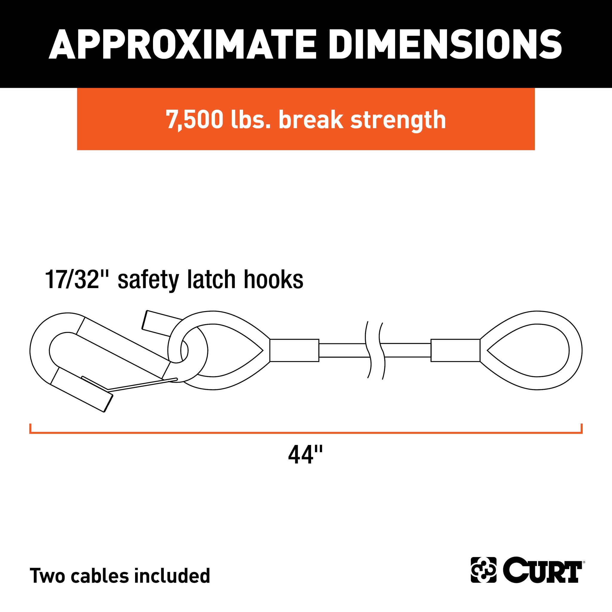 44" Safety Cables with 2 Snap Hooks (7,500 lbs, Vinyl-Coated, 2-Pack)