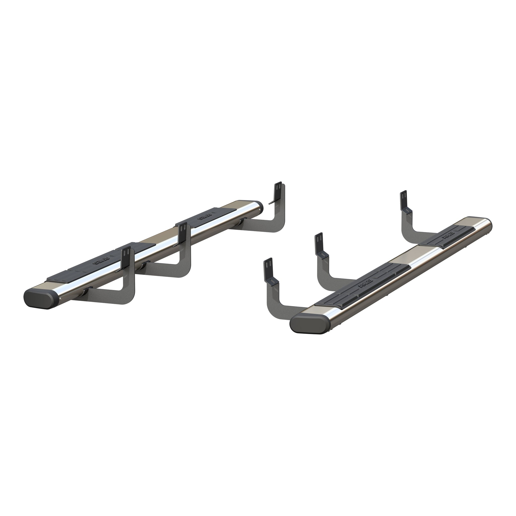 For solid footing, a comfortable step and a bold look for your truck, ARIES 6" oval side bars are a step up. They are designed to mimic the style of popular original equipment side bars and running boards, featuring two professional finish options, large non-skid step pads and tapered end caps. This particular pair of 6" ovals is made with 304 stainless steel, meaning they are high in nickel content to be truly resistant to rust and corrosion. For a lasting shine and a bright accent on your vehicle, they are given a highly polished, mirror-like finish. They are also available in semi-gloss black powder-coated aluminum. To protect the interior of the tubes, all 6" oval sides are equipped with hard ABS plastic end caps. The end caps come pre-attached to the tubes and feature a tapered design, lending to the overall OE look of the side bars and providing a professional finishing touch on your truck or SUV. For a sure step every time you climb into your vehicle, ARIES 6" ovals are equipped with extra-wide step pads. The step pads are made from tough polypropylene and provide a generous 5" width. The large, flat surface offers comfortable footing and has a textured surface to prevent slipping, even when wet. The polypropylene construction makes the step pads durable and crack-resistant for long-lasting use. ARIES 6" oval side bars are also made for easy, no-drill installation. The boards themselves feature a track system for versatile application, and they mount using vehicle-specific brackets for a custom fit on certain years of the Nissan Titan, Titan XD and Armada (see application info to verify fitment). The mounting brackets are made from high-strength carbon steel and use pre-existing holes to eliminate drilling during the installation process.