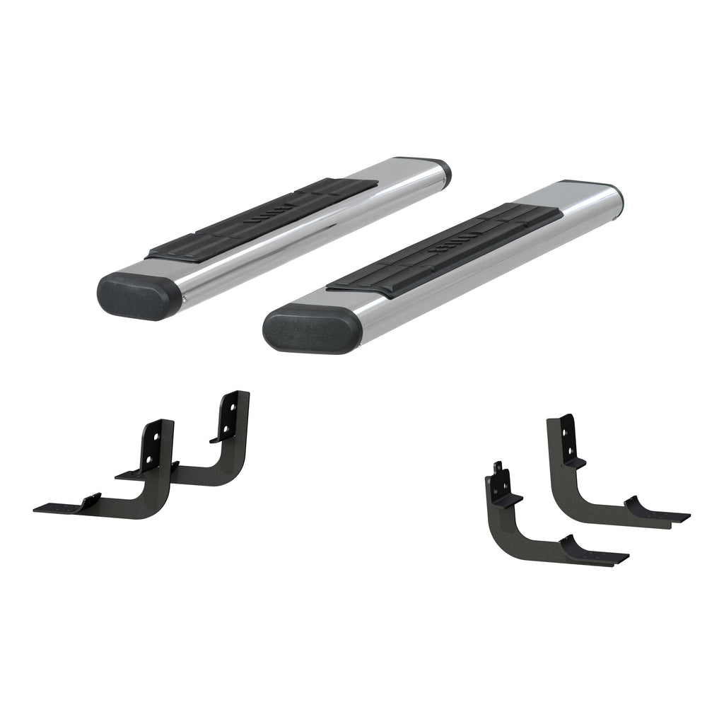 For solid footing, a comfortable step and a bold look for your truck, ARIES 6" oval side bars are a step up. They are designed to mimic the style of popular original equipment side bars and running boards, featuring two professional finish options, large non-skid step pads and tapered end caps. This particular pair of 6" ovals is made with 304 stainless steel, meaning they are high in nickel content to be truly resistant to rust and corrosion. For a lasting shine and a bright accent on your vehicle, they are given a highly polished, mirror-like finish. They are also available in semi-gloss black powder-coated aluminum. To protect the interior of the tubes, all 6" oval sides are equipped with hard ABS plastic end caps. The end caps come pre-attached to the tubes and feature a tapered design, lending to the overall OE look of the side bars and providing a professional finishing touch on your truck or SUV. For a sure step every time you climb into your vehicle, ARIES 6" ovals are equipped with extra-wide step pads. The step pads are made from tough polypropylene and provide a generous 5" width. The large, flat surface offers comfortable footing and has a textured surface to prevent slipping, even when wet. The polypropylene construction makes the step pads durable and crack-resistant for long-lasting use. ARIES 6" oval side bars are also made for easy, no-drill installation. The boards themselves feature a track system for versatile application, and they mount using vehicle-specific brackets for a custom fit on certain years of the Ram 1500, 1500 Classic, 2500 and 3500 (see application info to verify fitment). The mounting brackets are made from high-strength carbon steel and use pre-existing holes to eliminate drilling during the installation process.