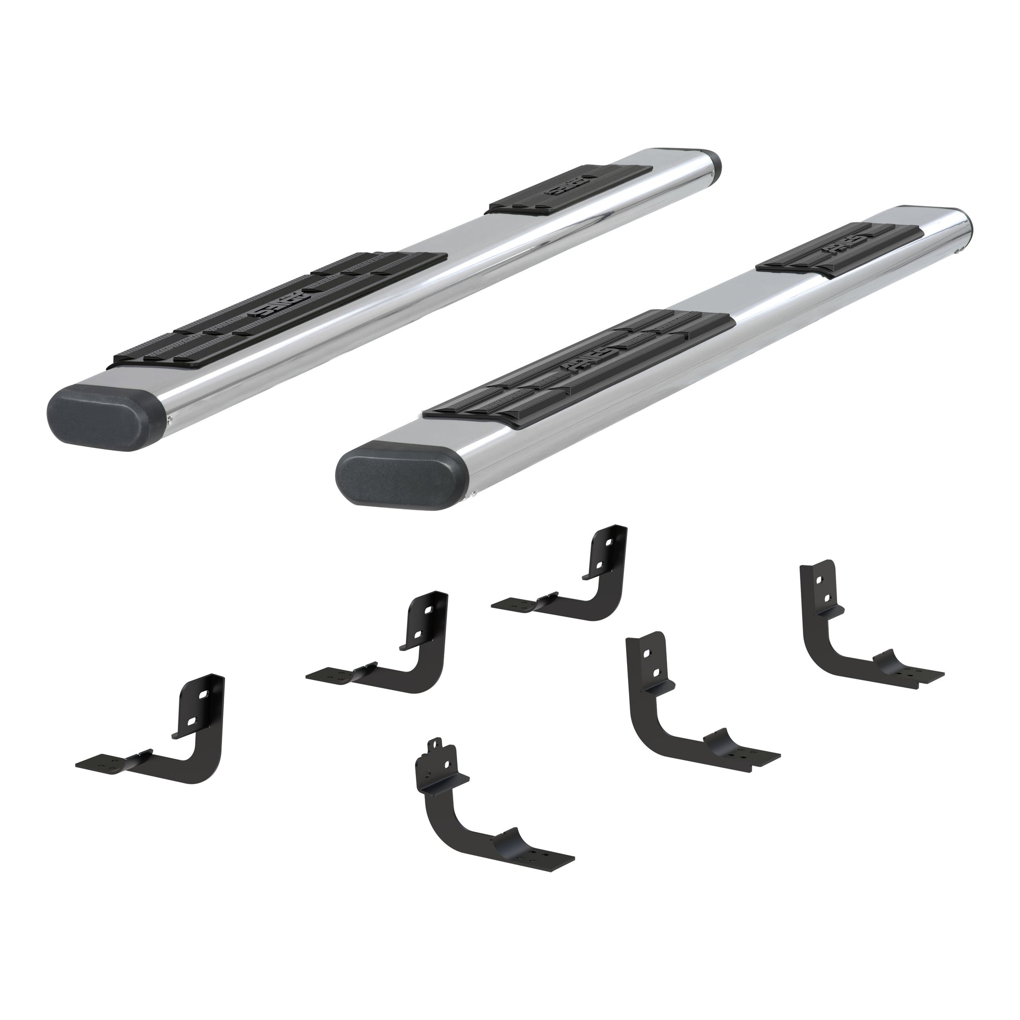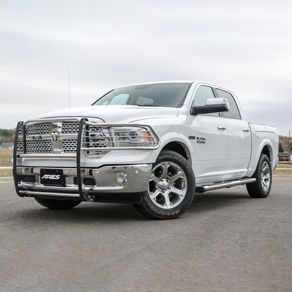 For solid footing, a comfortable step and a bold look for your truck, ARIES 6" oval side bars are a step up. They are designed to mimic the style of popular original equipment side bars and running boards, featuring two professional finish options, large non-skid step pads and tapered end caps. This particular pair of 6" ovals is made with 304 stainless steel, meaning they are high in nickel content to be truly resistant to rust and corrosion. For a lasting shine and a bright accent on your vehicle, they are given a highly polished, mirror-like finish. They are also available in semi-gloss black powder-coated aluminum. To protect the interior of the tubes, all 6" oval sides are equipped with hard ABS plastic end caps. The end caps come pre-attached to the tubes and feature a tapered design, lending to the overall OE look of the side bars and providing a professional finishing touch on your truck or SUV. For a sure step every time you climb into your vehicle, ARIES 6" ovals are equipped with extra-wide step pads. The step pads are made from tough polypropylene and provide a generous 5" width. The large, flat surface offers comfortable footing and has a textured surface to prevent slipping, even when wet. The polypropylene construction makes the step pads durable and crack-resistant for long-lasting use. ARIES 6" oval side bars are also made for easy, no-drill installation. The boards themselves feature a track system for versatile application, and they mount using vehicle-specific brackets for a custom fit on certain years of the Ram 1500, 1500 Classic, 2500 or 3500 and Dodge Ram 1500, 2500 and 3500 (see application info to verify fitment). The mounting brackets are made from high-strength carbon steel and use pre-existing holes to eliminate drilling during the installation process.