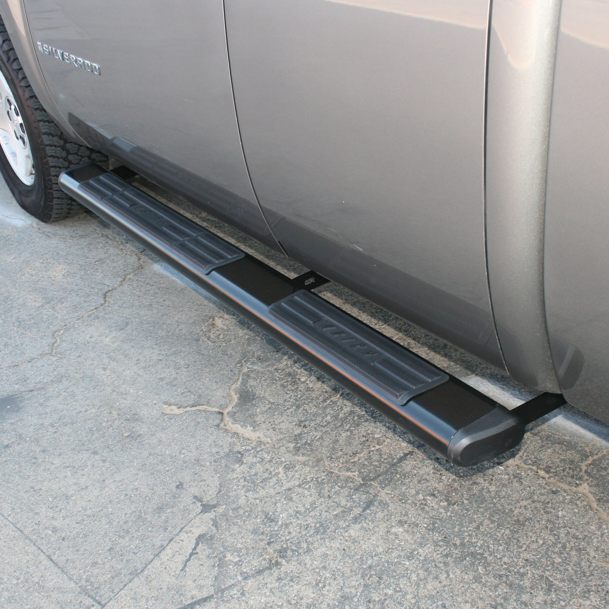 For solid footing, a comfortable step and a bold look for your truck, ARIES 6" oval side bars are a step up. They are designed to mimic the style of popular original equipment side bars and running boards, featuring two professional finish options, large non-skid step pads and tapered end caps. This particular pair of 6" ovals is made with aluminum alloy to be strong and lightweight. Aluminum construction makes them completely impervious to rust, and for an extra layer of corrosion protection, they come with a durable semi-gloss black powder coat finish. They are also available in polished 304 stainless steel. To protect the interior of the tubes, all 6" oval sides are equipped with hard ABS plastic end caps. The end caps come pre-attached to the tubes and feature a tapered design, lending to the overall OE look of the side bars and providing a professional finishing touch on your truck or SUV. For a sure step every time you climb into your vehicle, ARIES 6" ovals are equipped with extra-wide step pads. The step pads are made from tough polypropylene and provide a generous 5" width. The large, flat surface offers comfortable footing and has a textured surface to prevent slipping, even when wet. The polypropylene construction makes the step pads durable and crack-resistant for long-lasting use. ARIES 6" oval side bars are also made for easy, no-drill installation. The boards themselves feature a track system for versatile application, and they mount using vehicle-specific brackets for a custom fit on certain years of the Chevrolet Silverado, Avalanche, Suburban or Tahoe and GMC Sierra or Yukon XL (see application info to verify fitment). The mounting brackets are made from high-strength carbon steel and use pre-existing holes to eliminate drilling during the installation process.